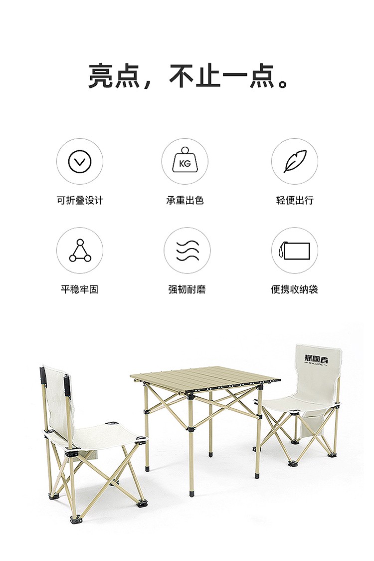 型号:TXZ-HB-7619 桌:50*53*50cm 椅:39*39*65cm 材质:碳钢、牛津布 颜色:白色 净重:4.15kg 毛重:4.95kg 包装尺寸:68*25*21cm 69码:6959345707508