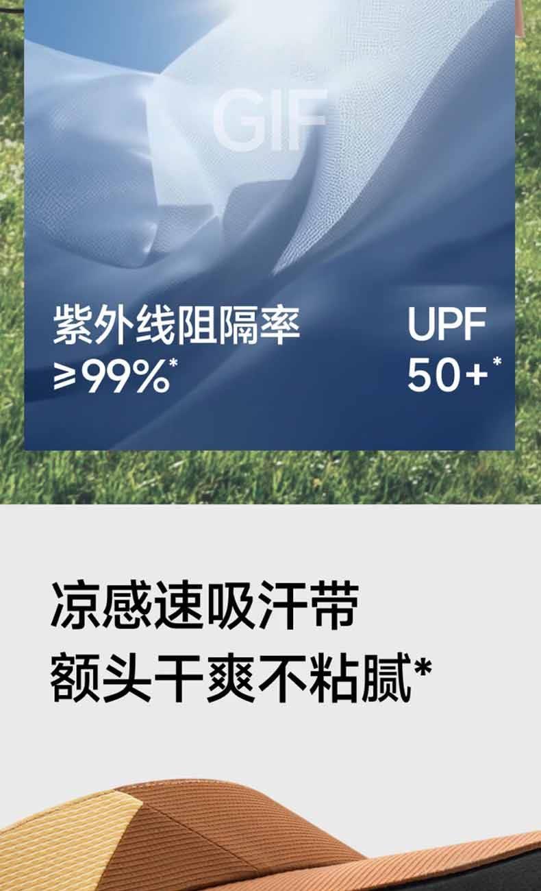 UPF50+原纱防晒、全脸遮阳挡光、不怕晒红晒伤 5A级抑 菌毛巾汗带、长时间佩戴清爽无异味 稳固佩戴系统、大小好调节、跑跳不易掉