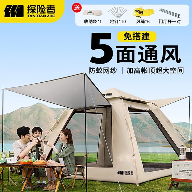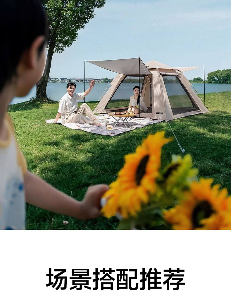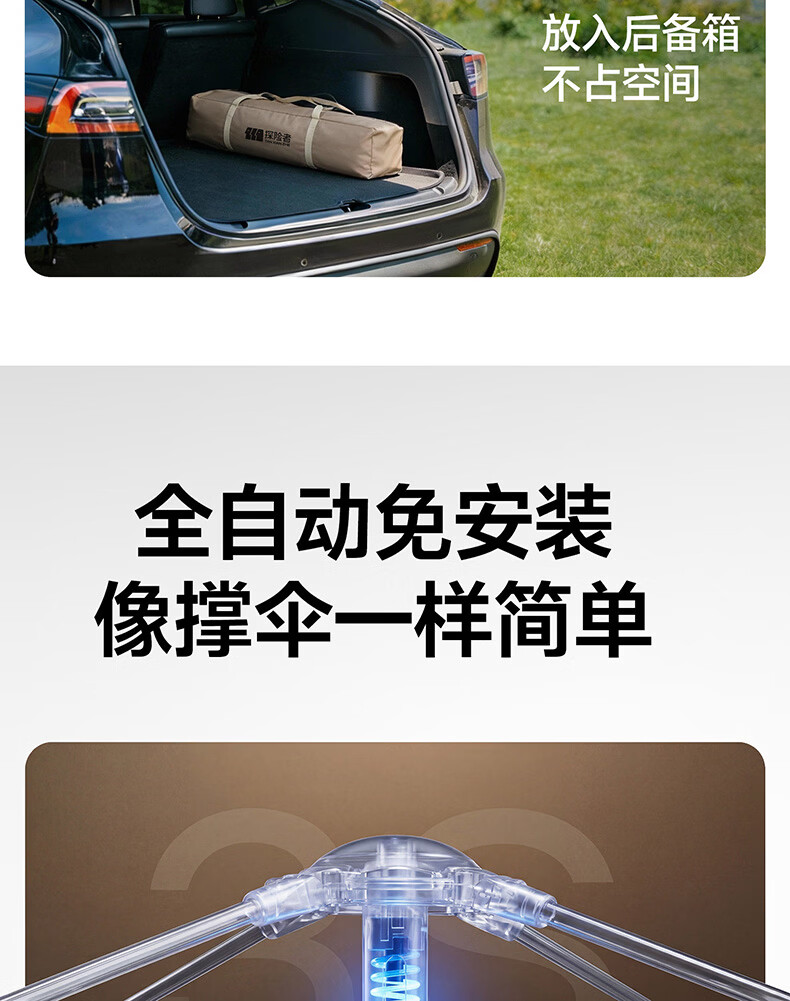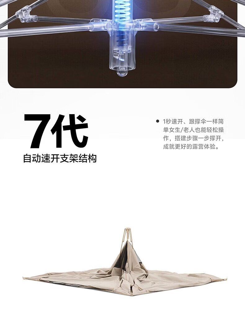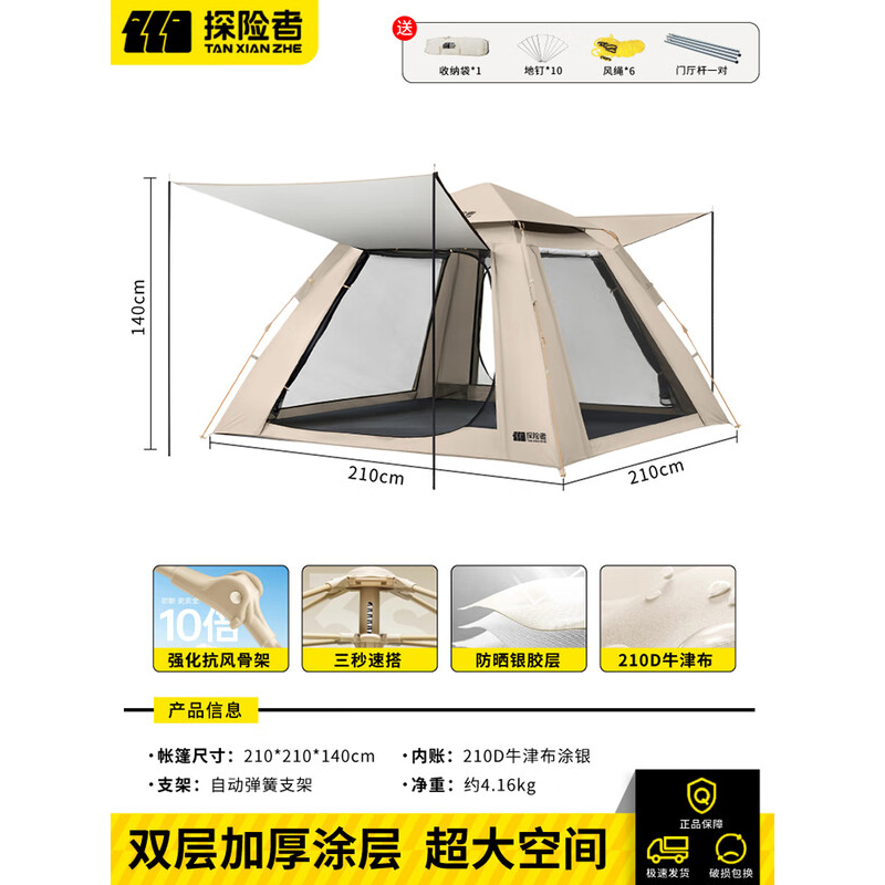 型号:TXZ-2184 尺寸:210*210*140cm 材质:100 %聚酯纤维、玻璃纤维 颜色:银胶卡其 净重:3.6kg 毛重:4.1kg 包装尺寸:78*17*17cm 69码:6959345708154