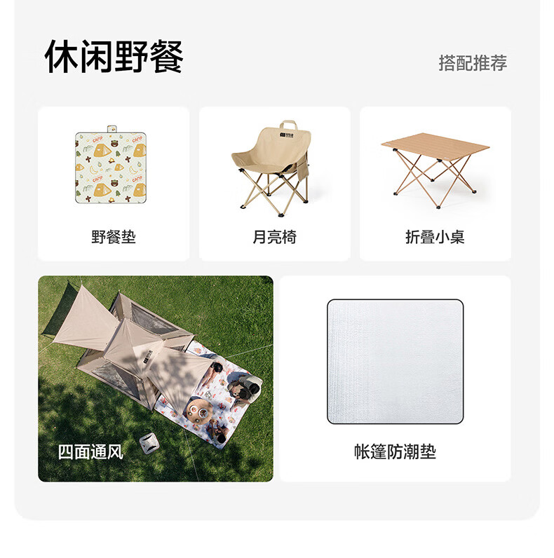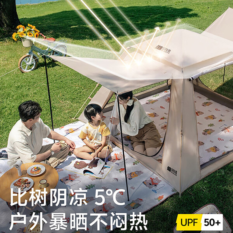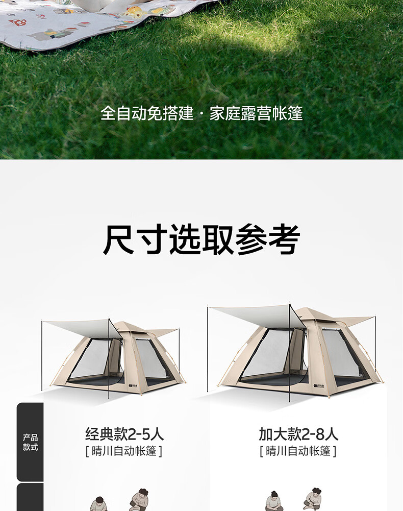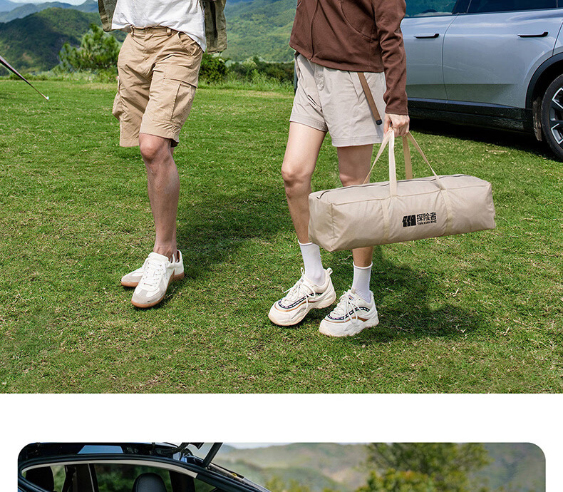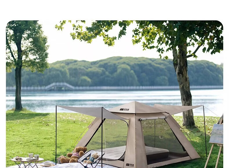 型号:TXZ-2184 尺寸:210*210*140cm 材质:100 %聚酯纤维、玻璃纤维 颜色:银胶卡其 净重:3.6kg 毛重:4.1kg 包装尺寸:78*17*17cm 69码:6959345708154