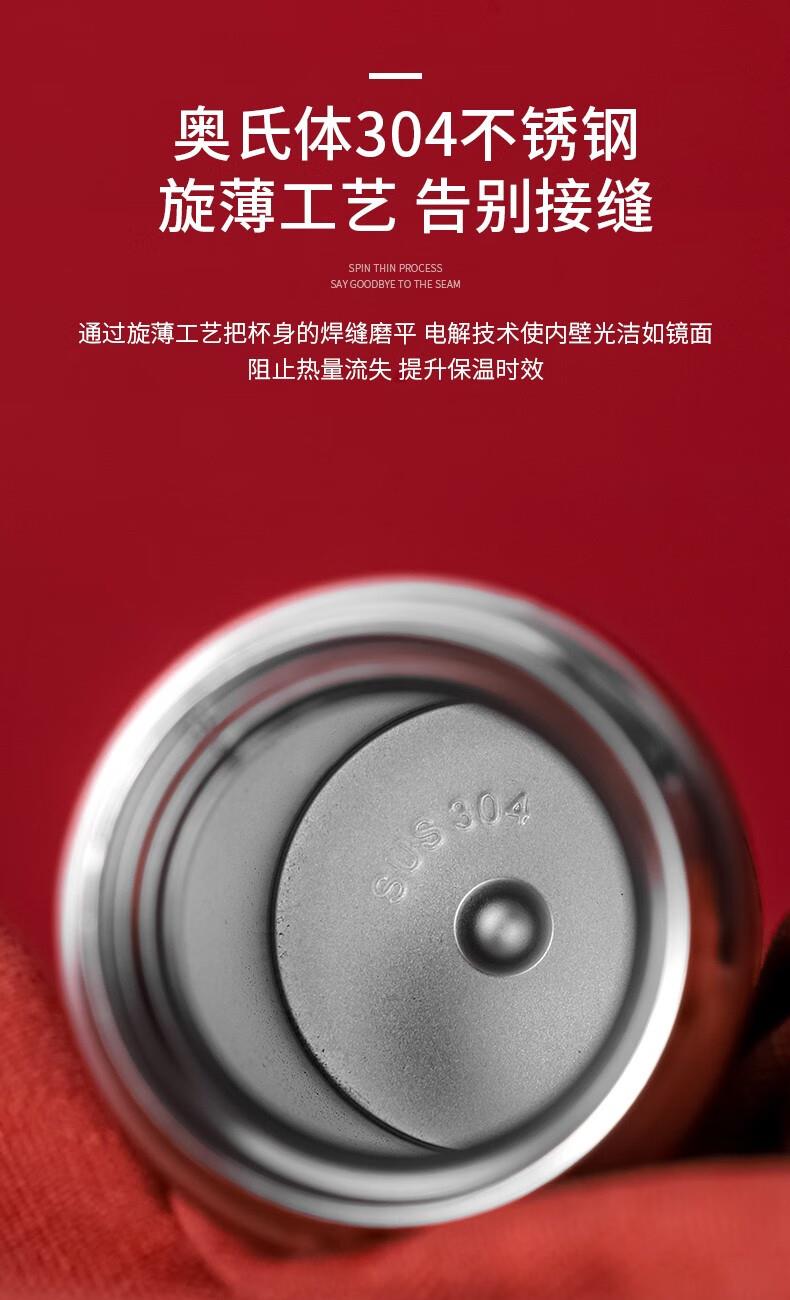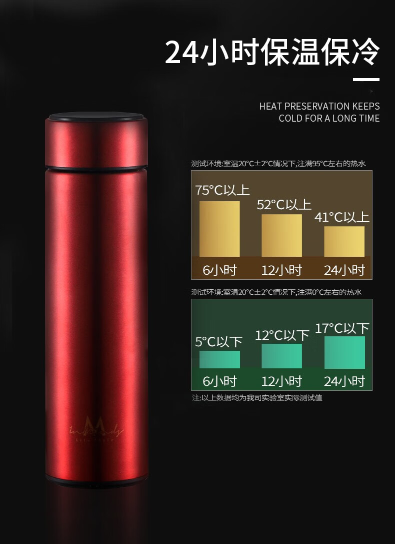 杯身材质:奥氏体不锈钢SUS304(食品接触用) 塑 料 件:PP(食品接触用) 密 封 圈:硅胶(食品接触用) 执行标准:GB/T 29606-2013《不锈钢真空保温容器》 保温效果:95℃水满容器,室温20℃,6小时≥55℃ 保冷效果:0℃水满容量,室温20℃,6小时≤5℃