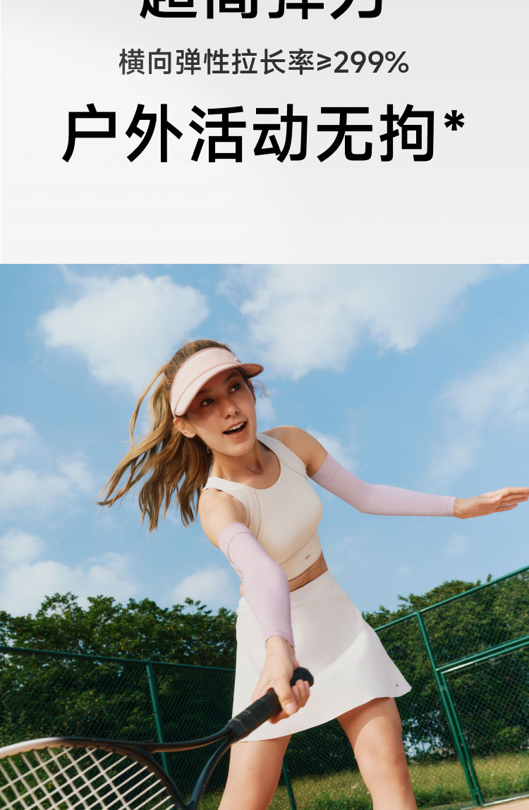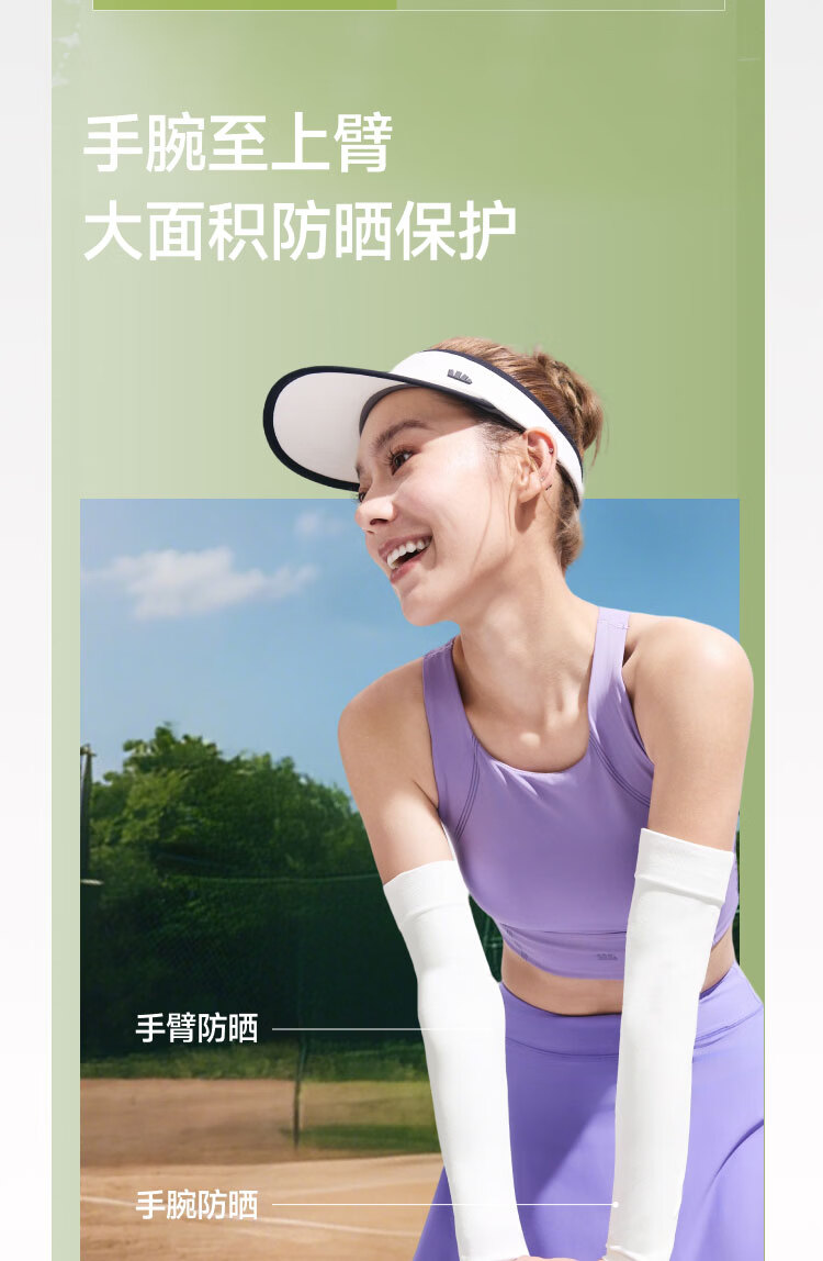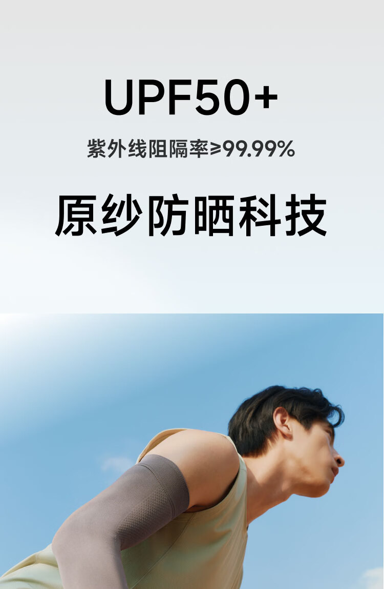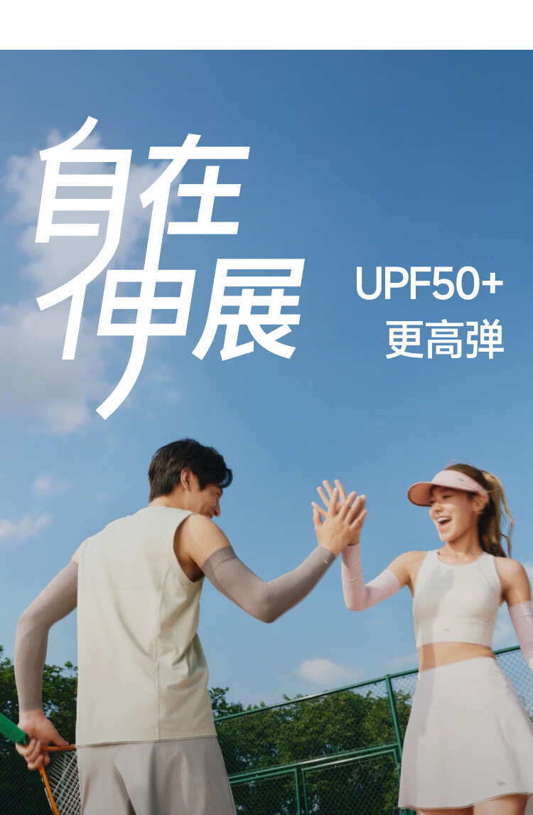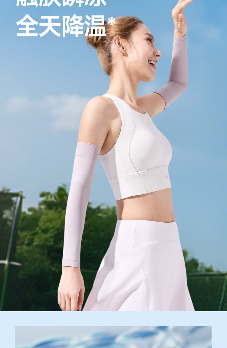 UPF50+、原纱防晒水洗不减防晒力、凉感升级 持久冰爽、手臂直至手腕、全 方位防晒 四面高弹不紧绷、男女同款