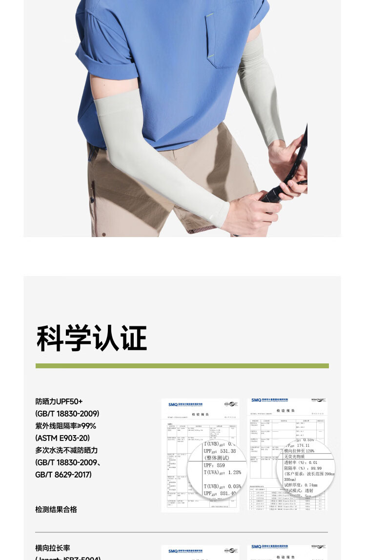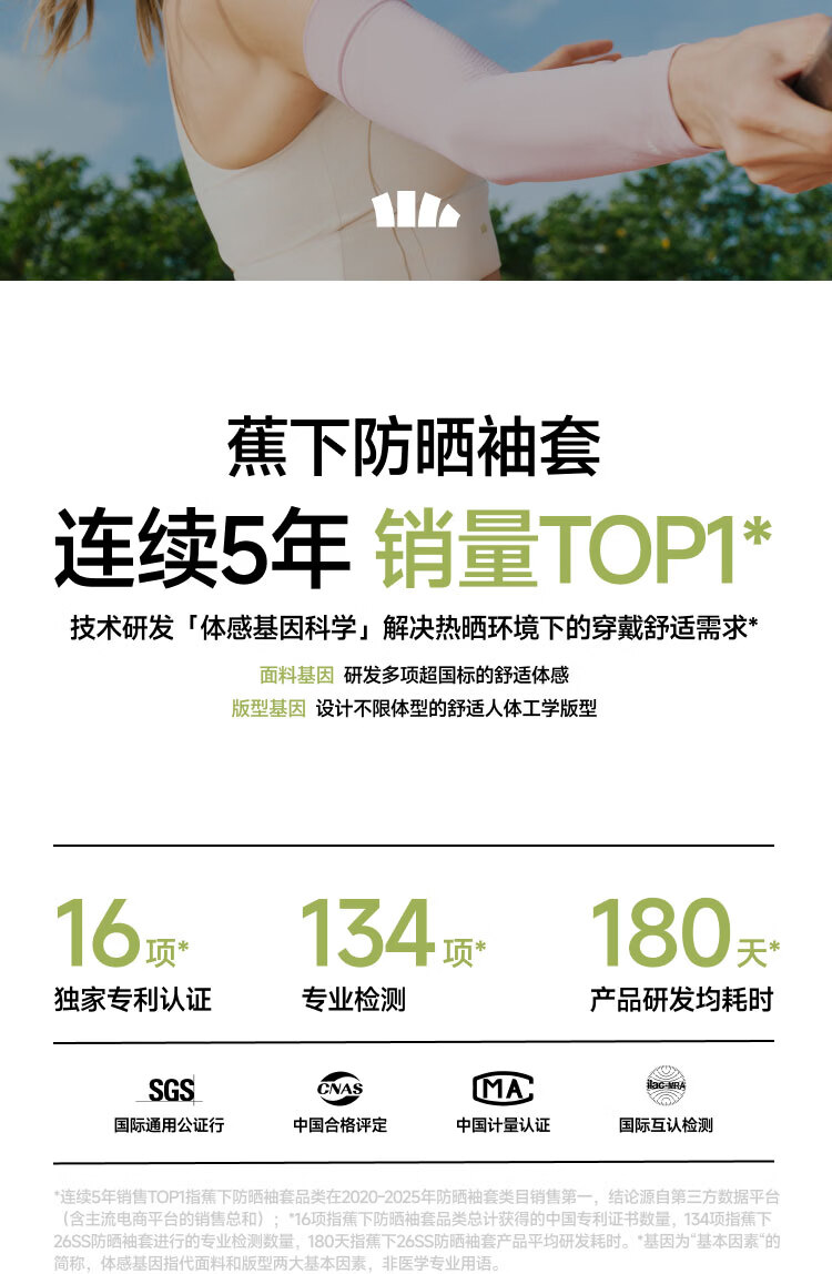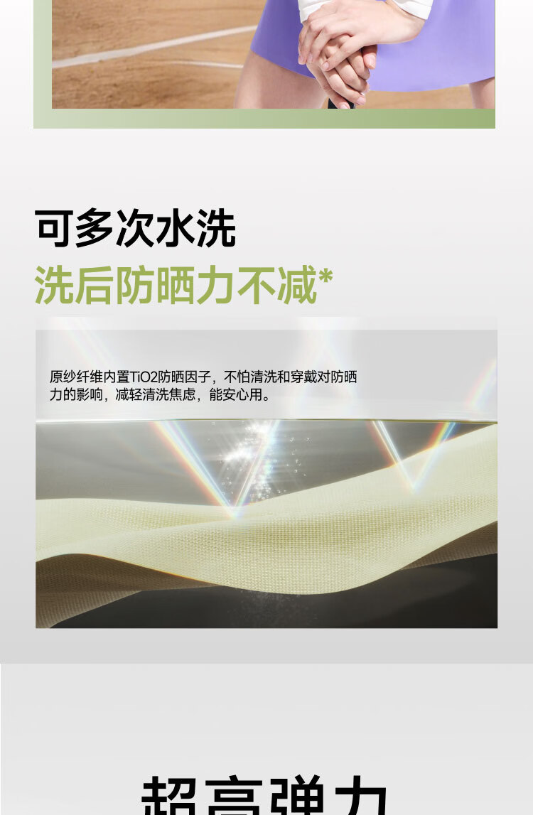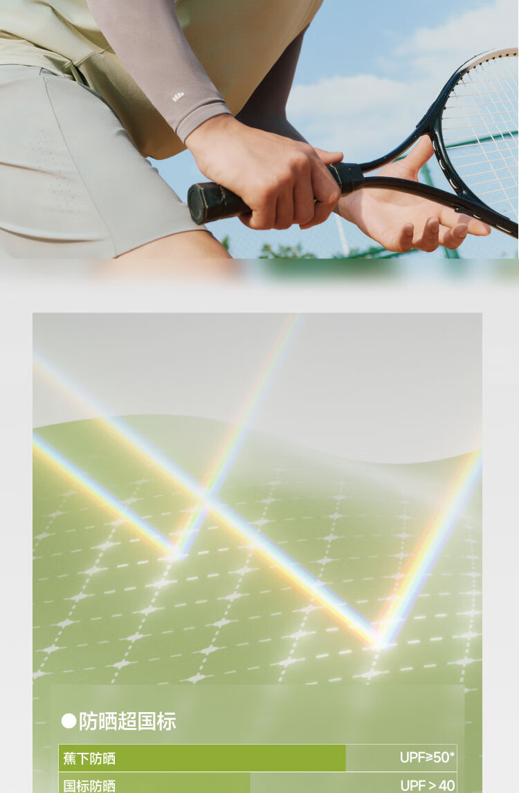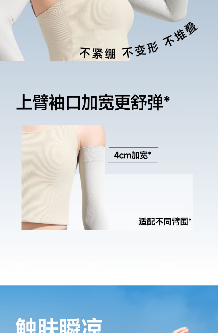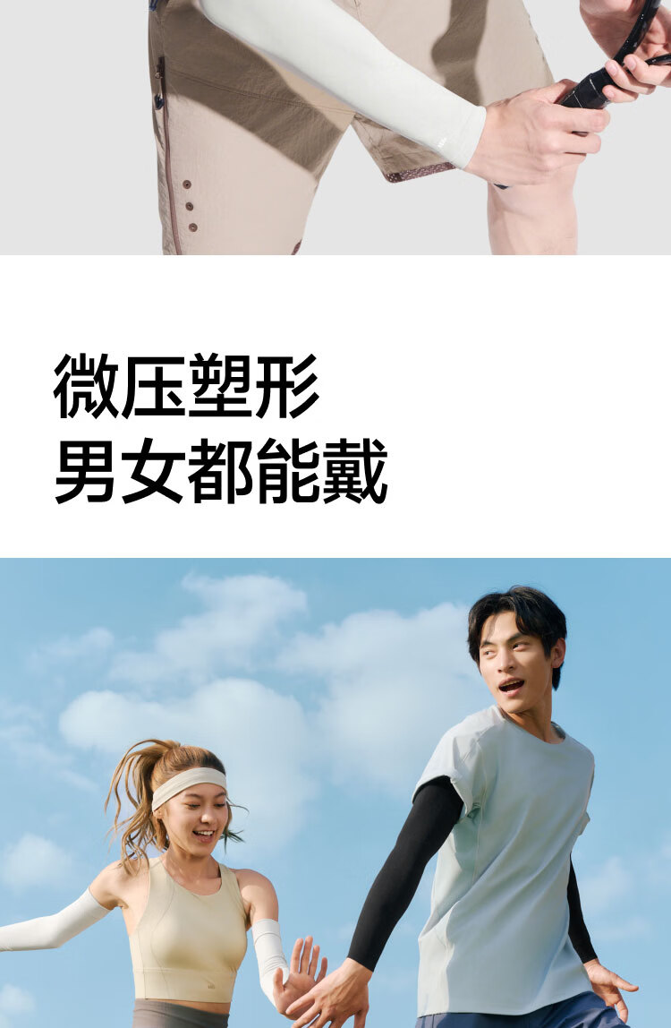 UPF50+、原纱防晒水洗不减防晒力、凉感升级 持久冰爽、手臂直至手腕、全 方位防晒 四面高弹不紧绷、男女同款