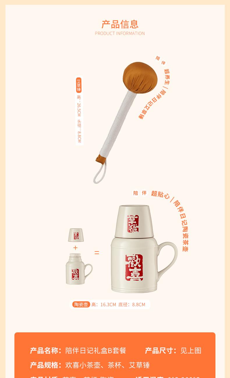 欢喜小茶壶:500ml欢喜茶杯:130ml配置清单:欢喜小茶壶500ml、茶杯130ml,艾草锤容量:欢喜小茶壶500ml、茶杯130ml材质:陶瓷
