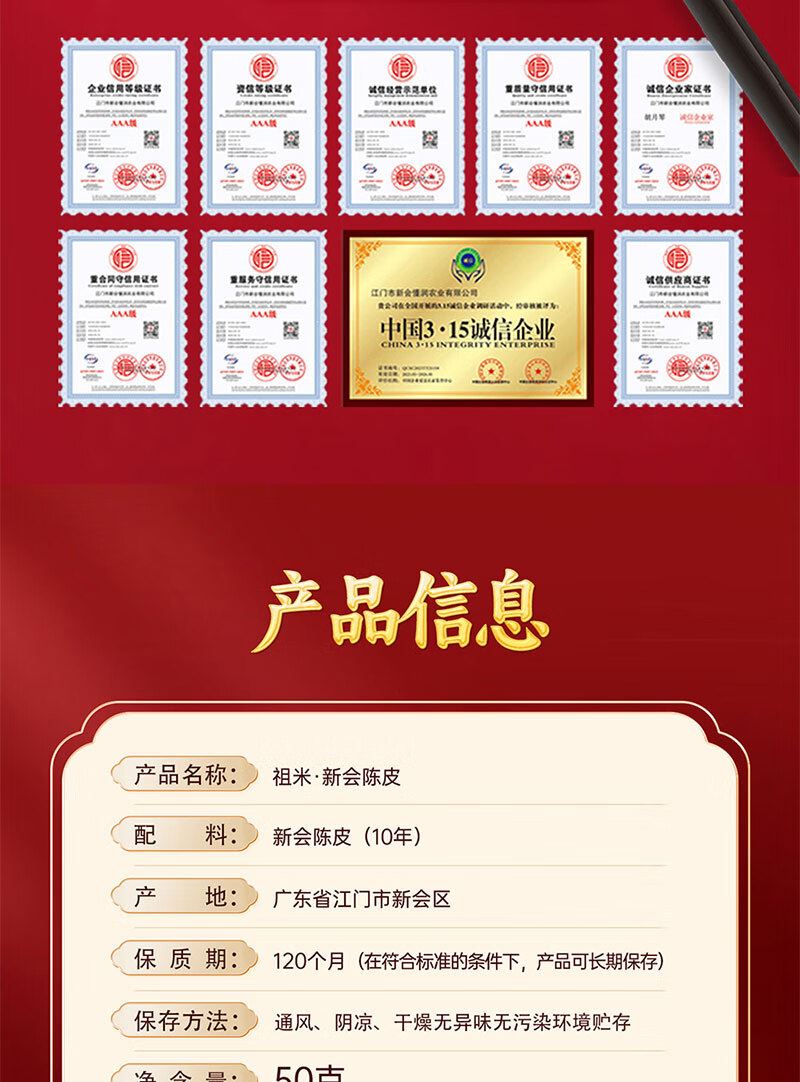 祖米10年新会陈皮金蕴陈香礼盒50克
