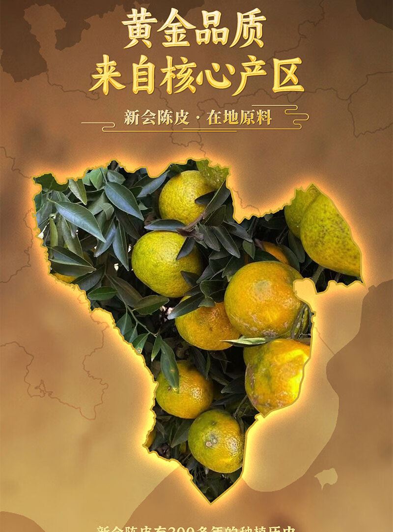 ZMJY50-10年 工艺∶纯晒 新会柑(生态圈枝柑) 产 地∶新会区东甲 年份∶10年 生 产 日 期∶2025.8 规 格∶50克 /盒 18盒 /箱