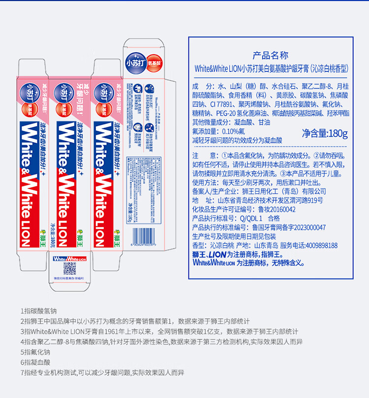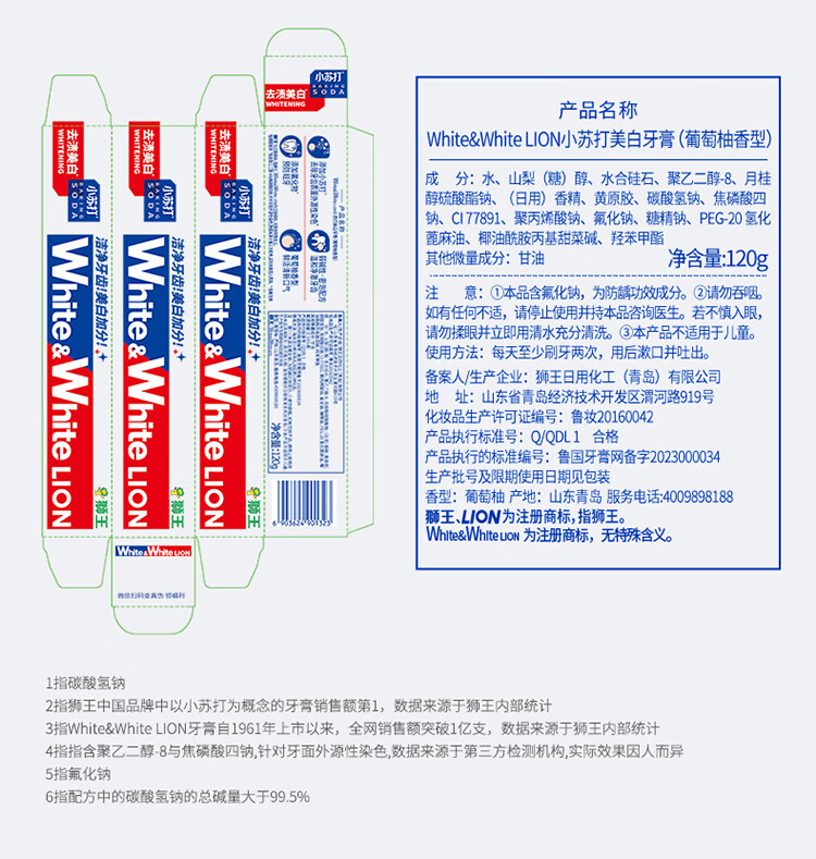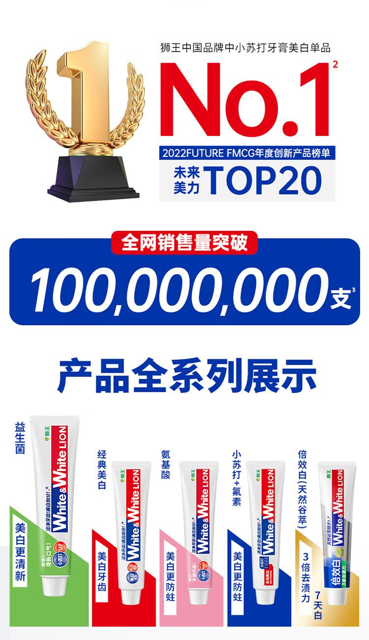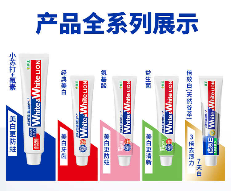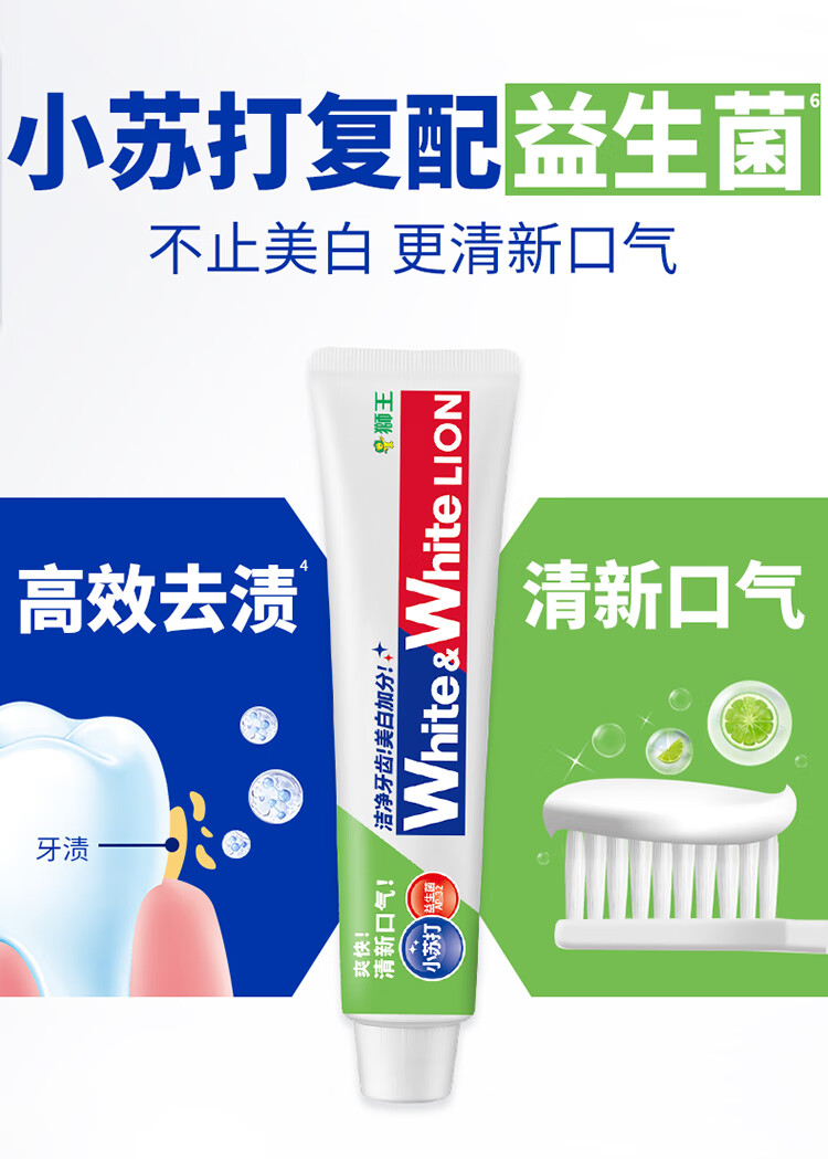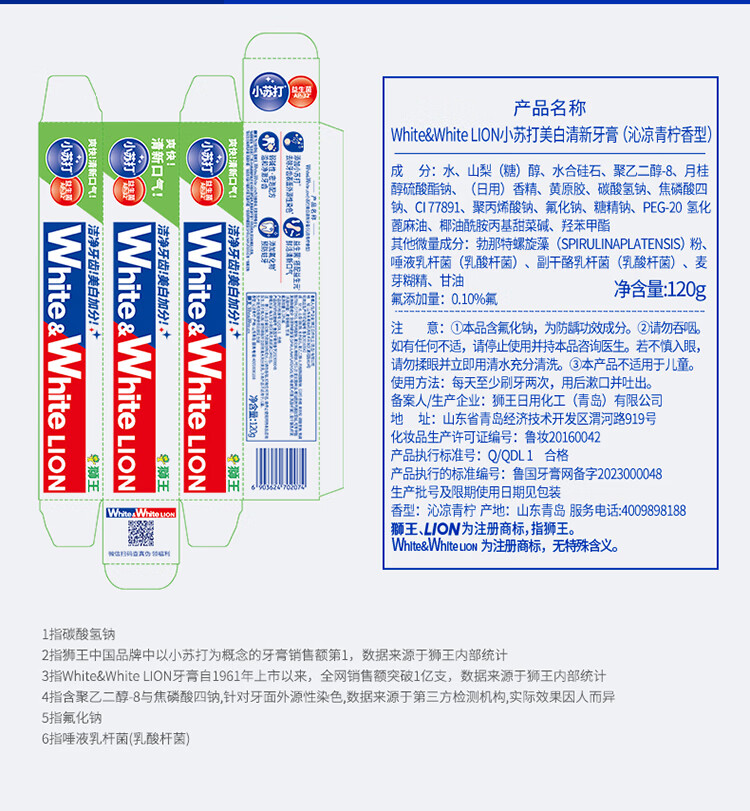 1.狮王细齿洁弹净透牙刷2支装1 2.狮王小苏打美白清新牙膏沁凉青柠香型40g*1 3.狮王NONIO口气清新牙膏柑橘薄荷130g*1 4.狮王萌牙乐享礼盒*1