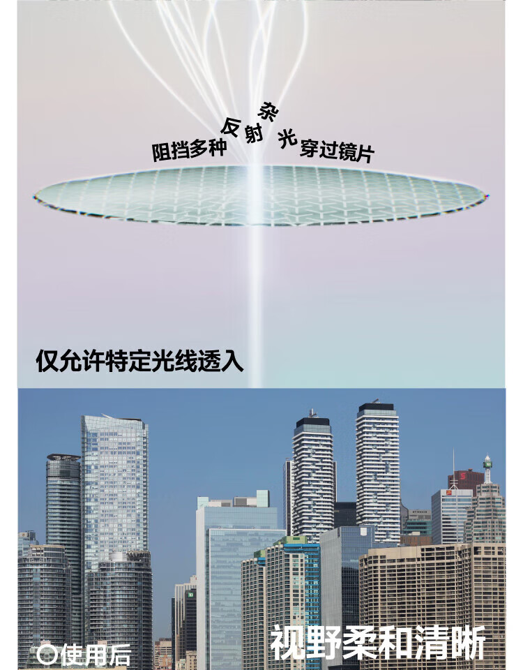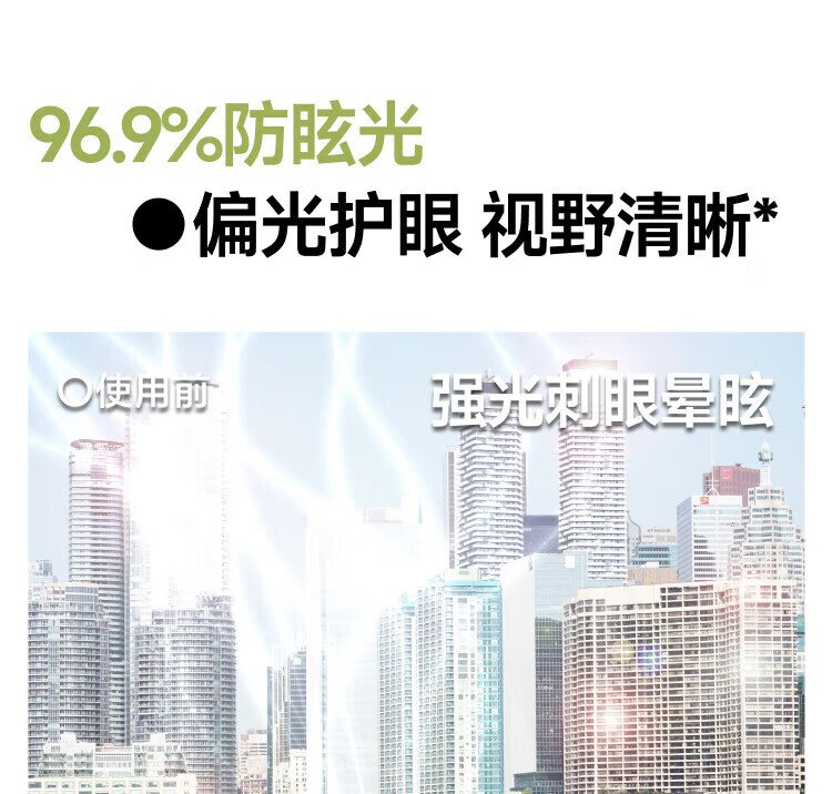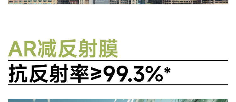 清晰度超标准140%还原真实视野 OAR抗反射率99.6%拒绝倒影干扰 紫外线阻隔率>99.9%有效保护视网膜