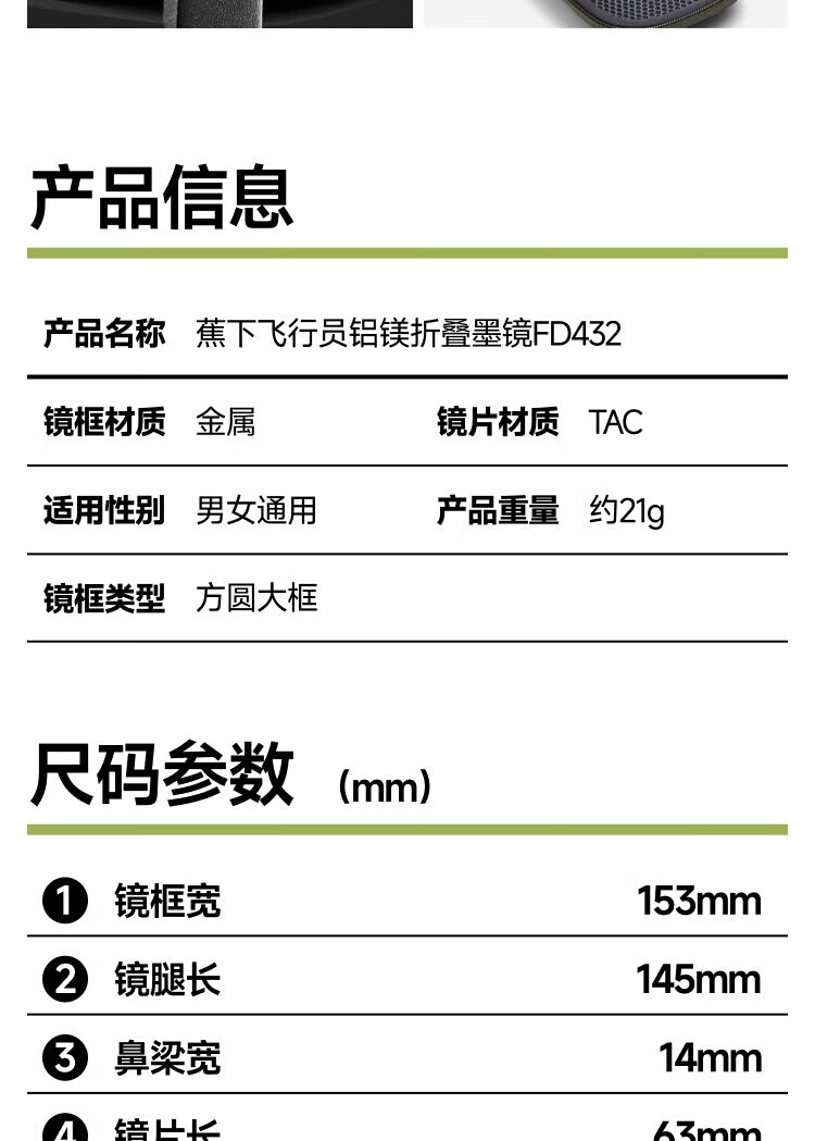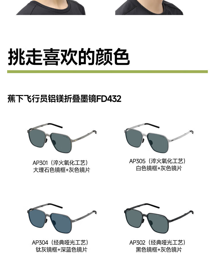 蕉下飞行员铝镁折叠墨镜FD432