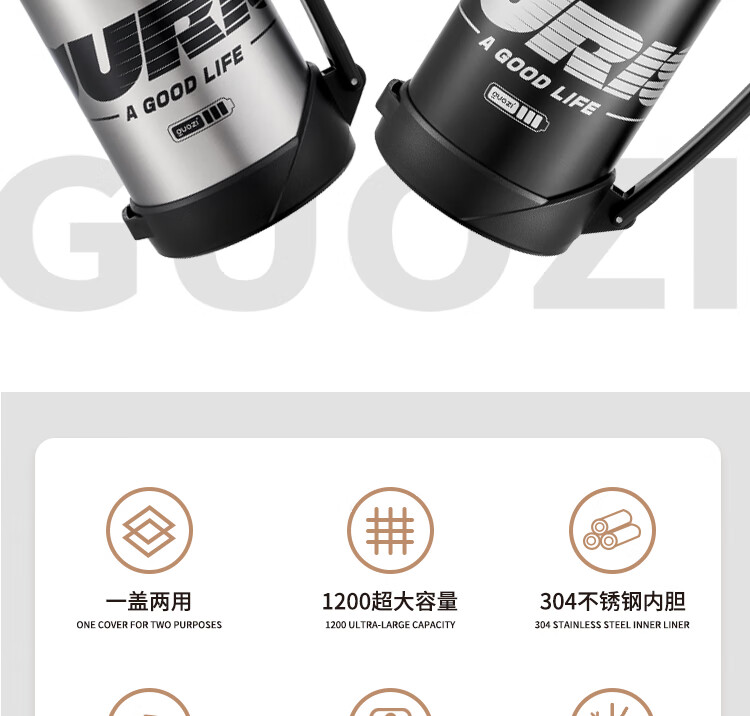 容 量:1200ml 材 质:内胆304不锈钢+pp 尺 寸:壶D90×288mm 装 箱数量:30只 /箱 产品条码:6932968609626