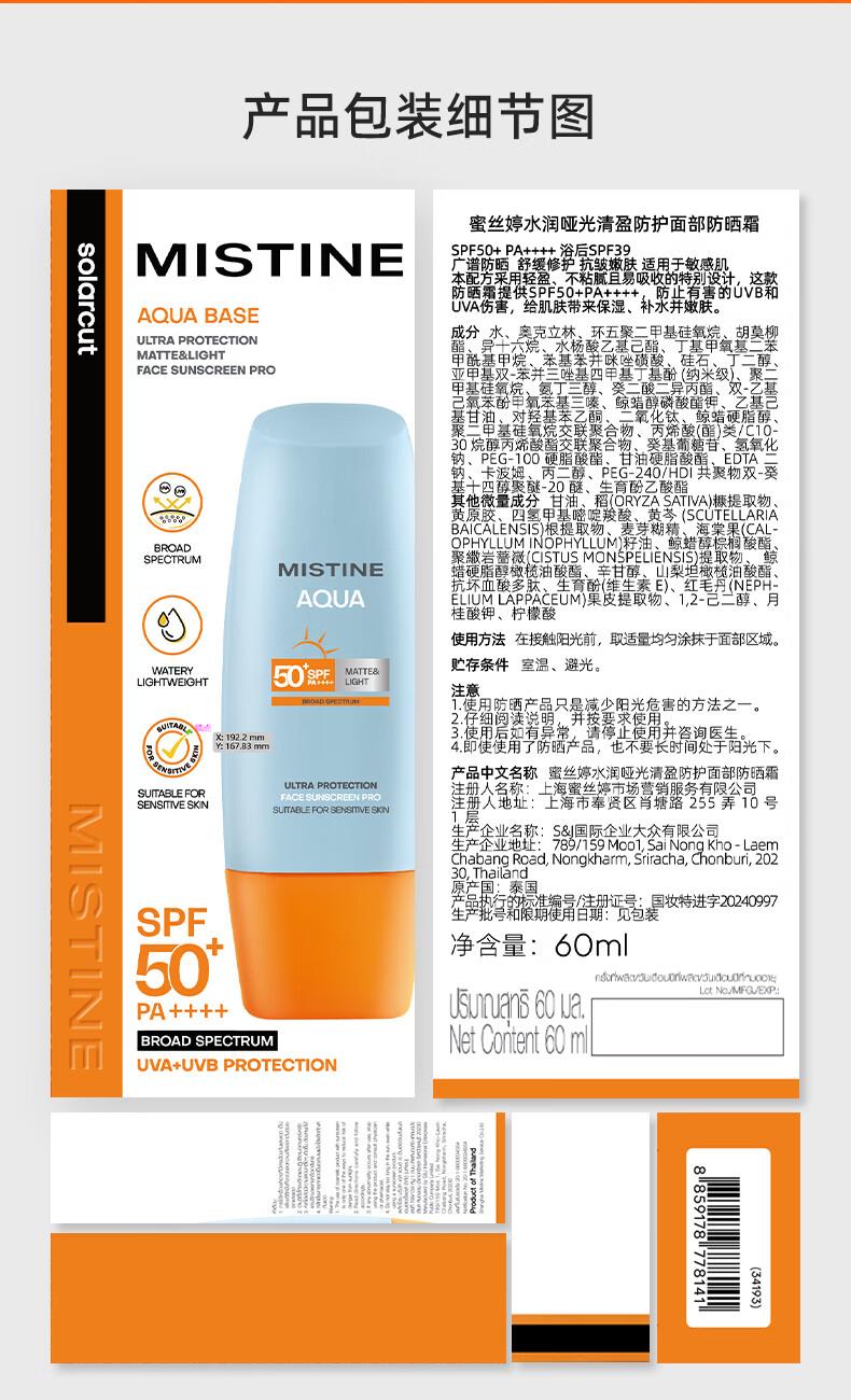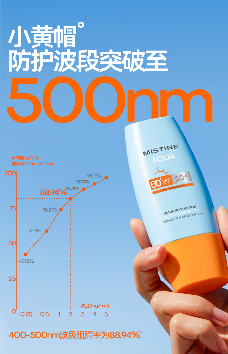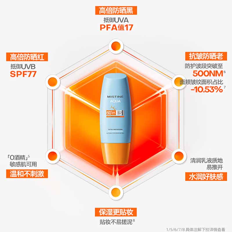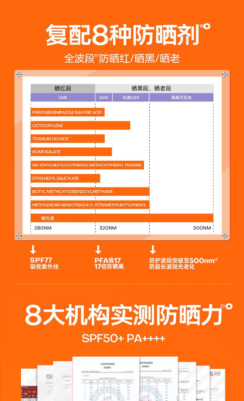 适合肤质:敏感肌适用 PA值:PA++++ 防晒指数:SPF50+