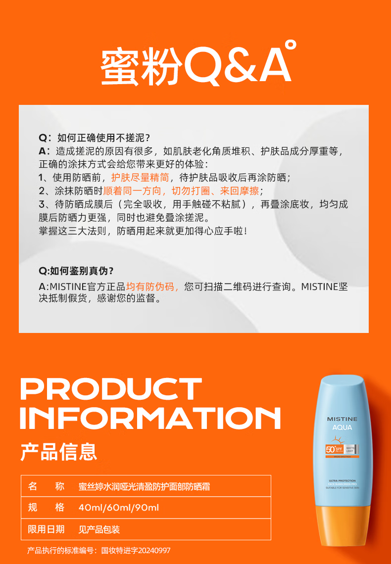 蜜丝婷水感清透防晒乳40m1