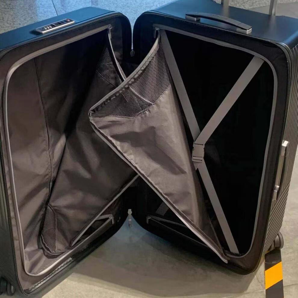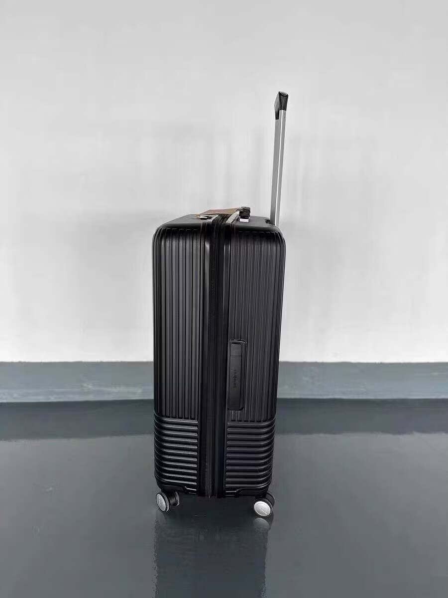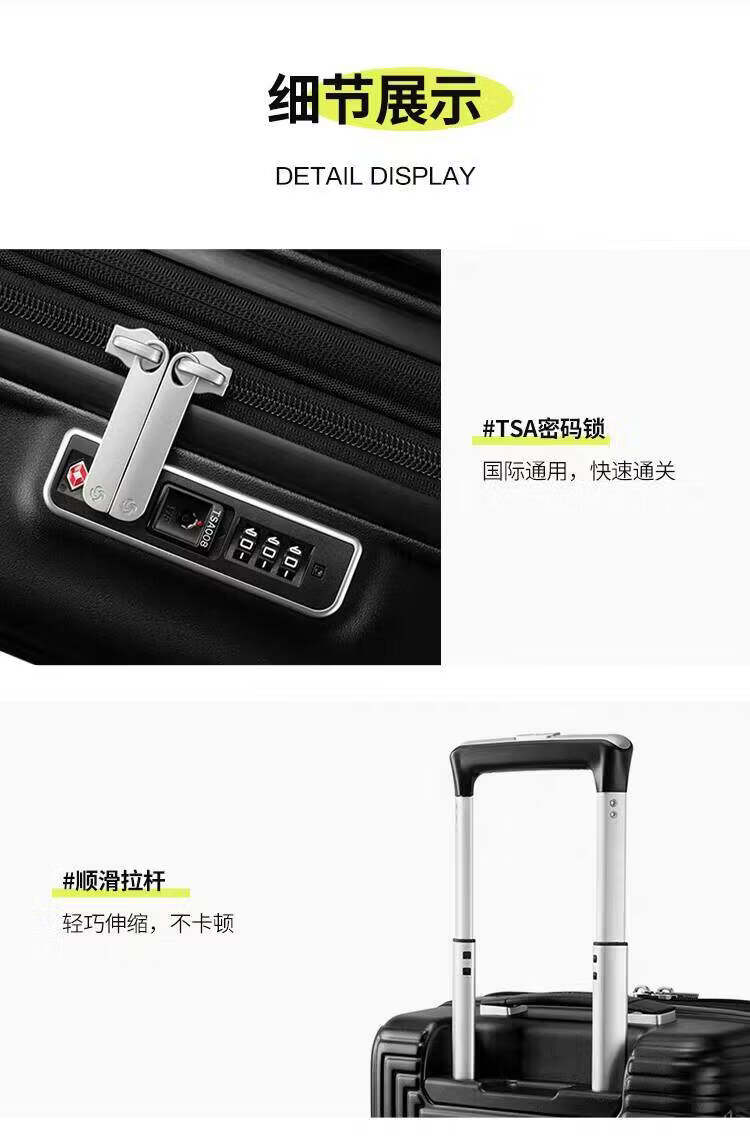 系列名:TRANTER 产品尺寸:410×350×730mm 产品材质:外部材质:PC 内部材质:织物 装 箱数:1pcs/箱 ·精选PC材质,斜纹设计,时尚经典; ·独特运动箱型,3:7智慧分区,方便放置大类物件; ·多提手设计,方便旅途中拿取,挂钩侧支脚保护箱体的同时增加额外收纳; ·嵌入式一体固定TSA密码锁,防盗防爆拉链; ·可视化网面,可分门别类放置物件,环保内里,干湿分离,高效收纳; ·轴承飞机轮,推拉平稳省力,行动自如,出行轻松应对;