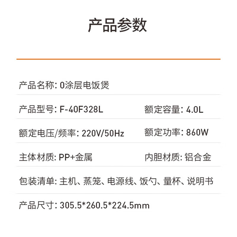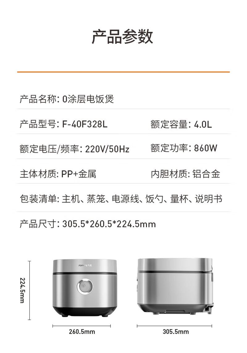 九阳316L0涂层电饭煲F-40F328L新款