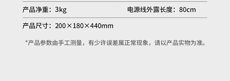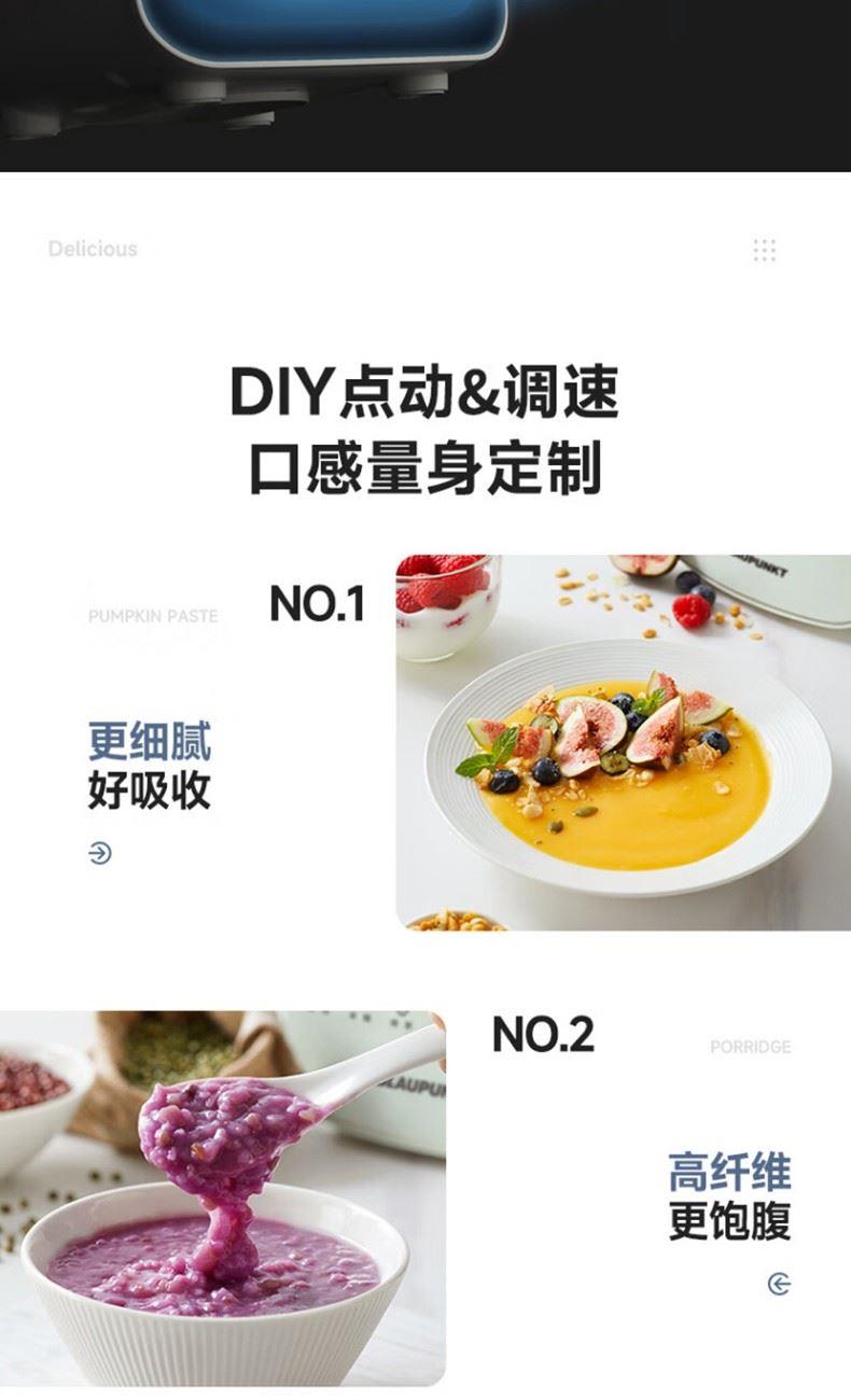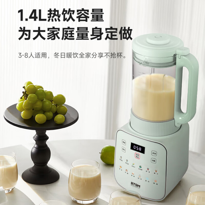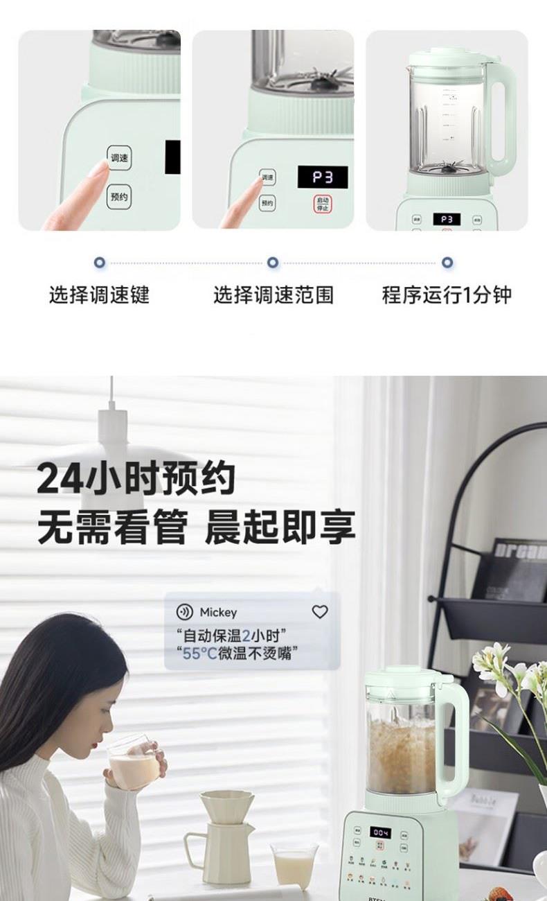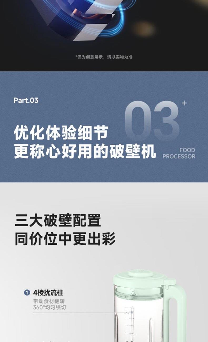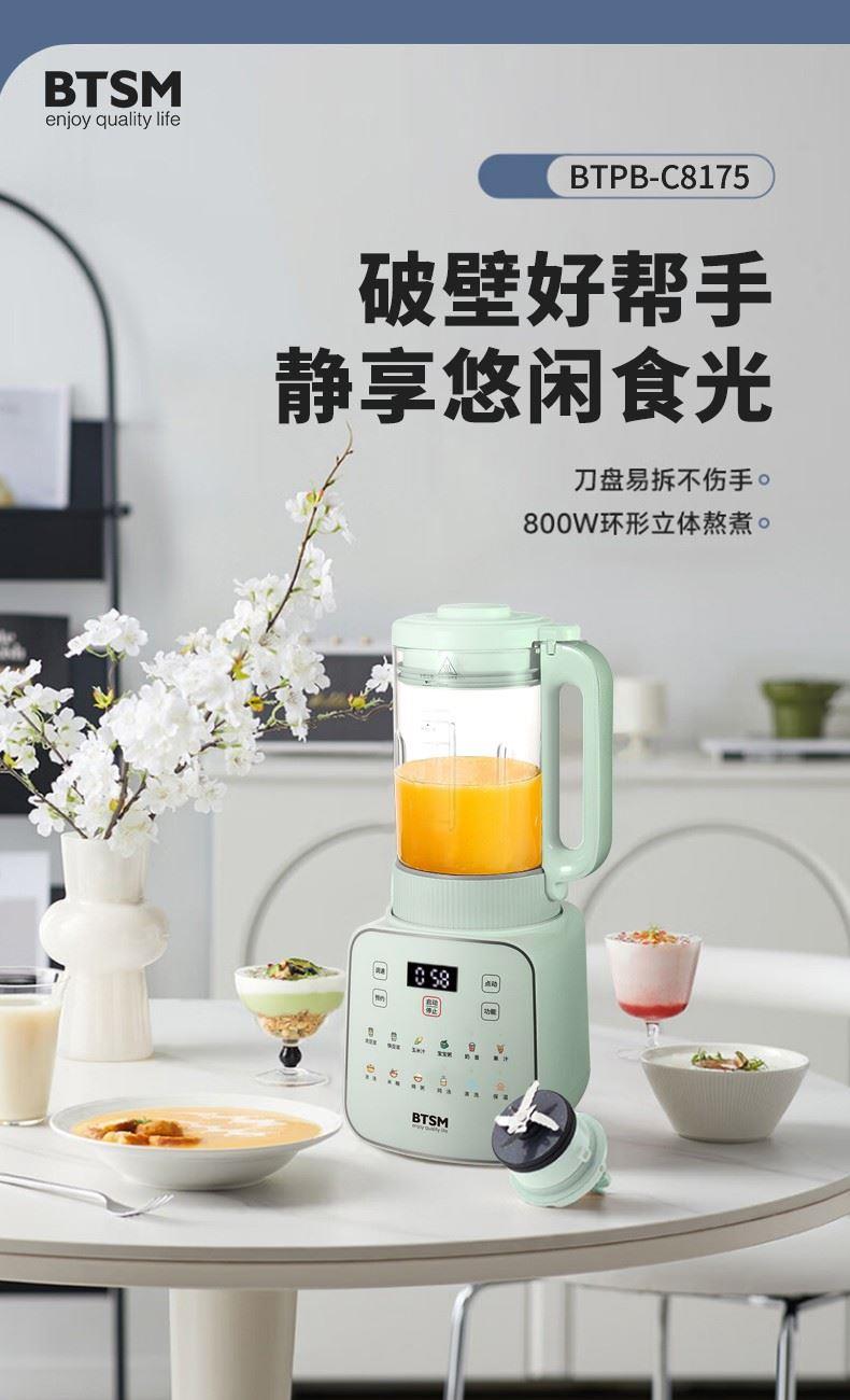 加热功率:800W 搅拌功率:400W 额定电压/频率:220V~ 50Hz 额定容量:热饮大容量:1.4L 冷饮大容量:1.75L 电机转速:23000转/分钟 产品净重:3.0kg 产品材质:PP、ABS、高硼硅玻璃、钢 条形码:6971679081321 装 箱数:1*1 产品尺寸:200*180*440mm 邮购箱尺寸:388*245*303mm 装 箱清单:主机*1、杯身*1、精钢刀组*1、杯盖*1、刷子*1、量杯*1、说明书*1