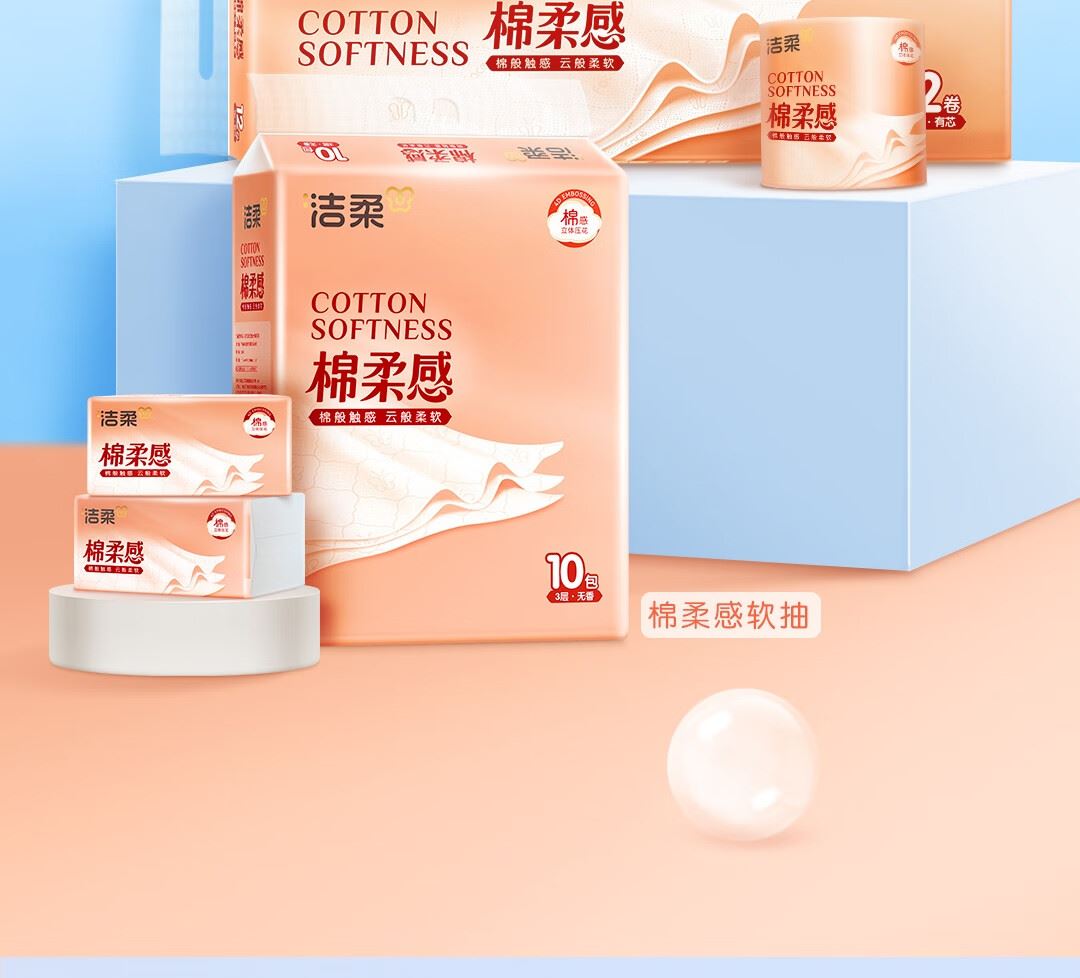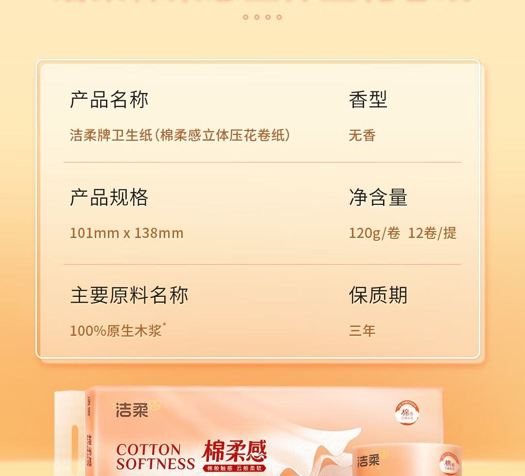 洁柔牌卫生纸(棉柔感立体压花有芯)120g4层(12卷装)
