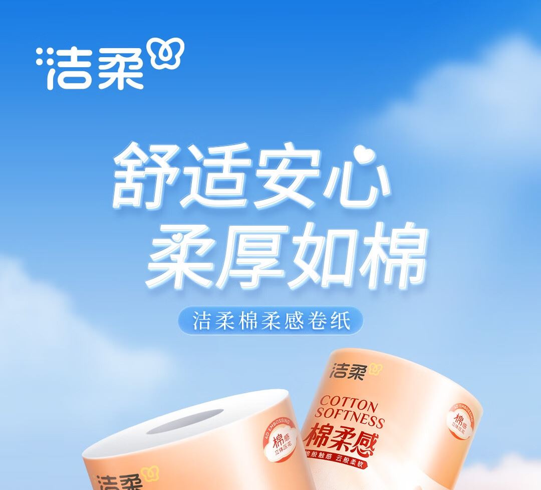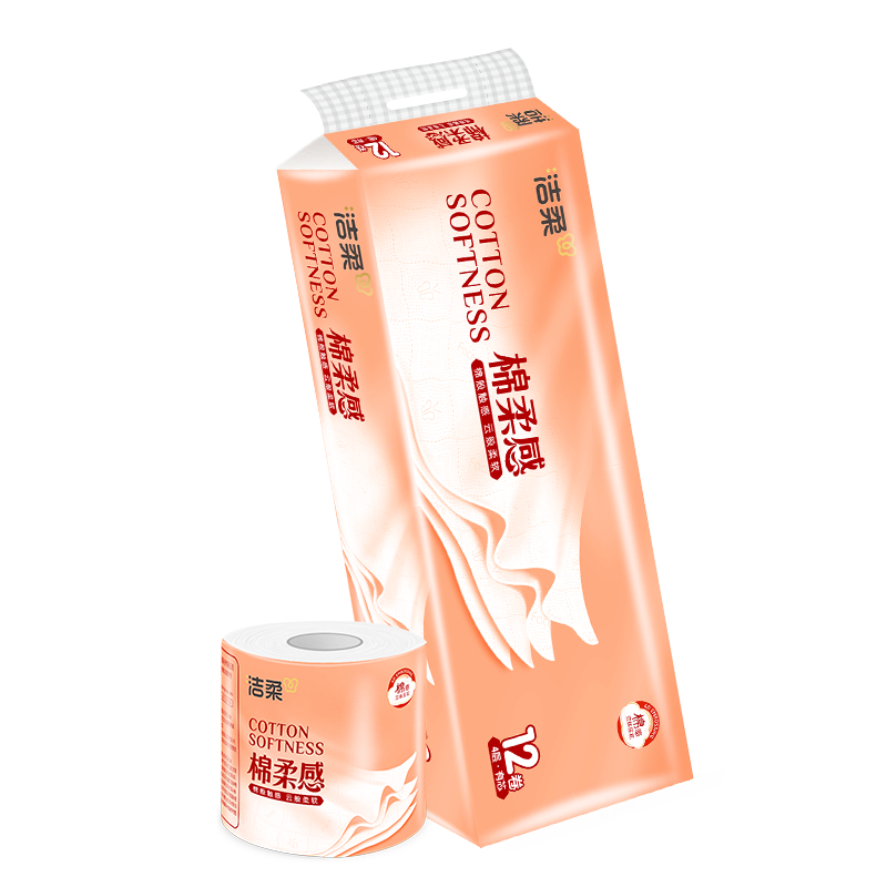 DJ203-12洁柔牌卫生纸(棉柔感立体压花有芯)120g4层(12卷装)新logo