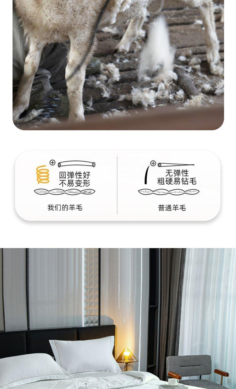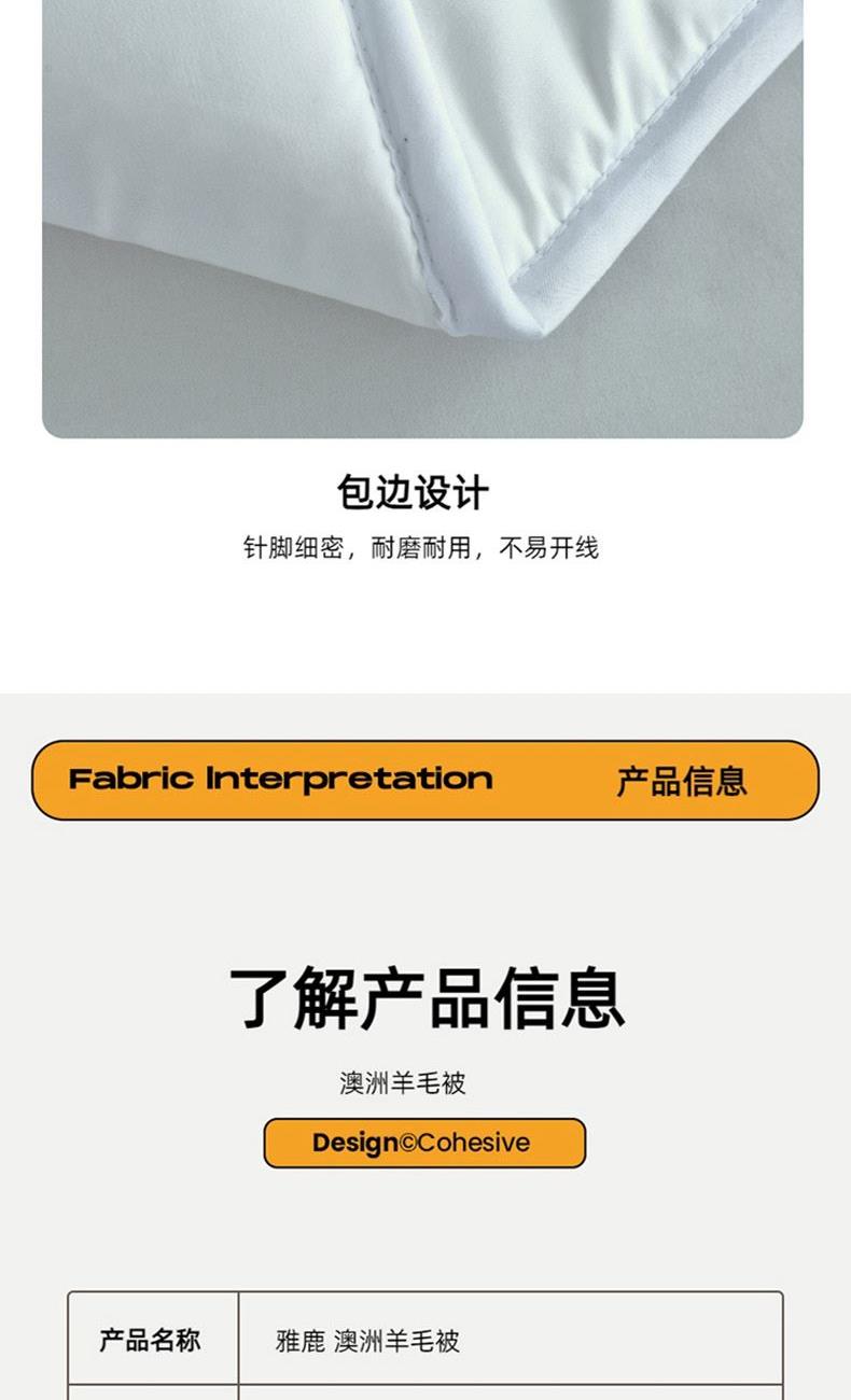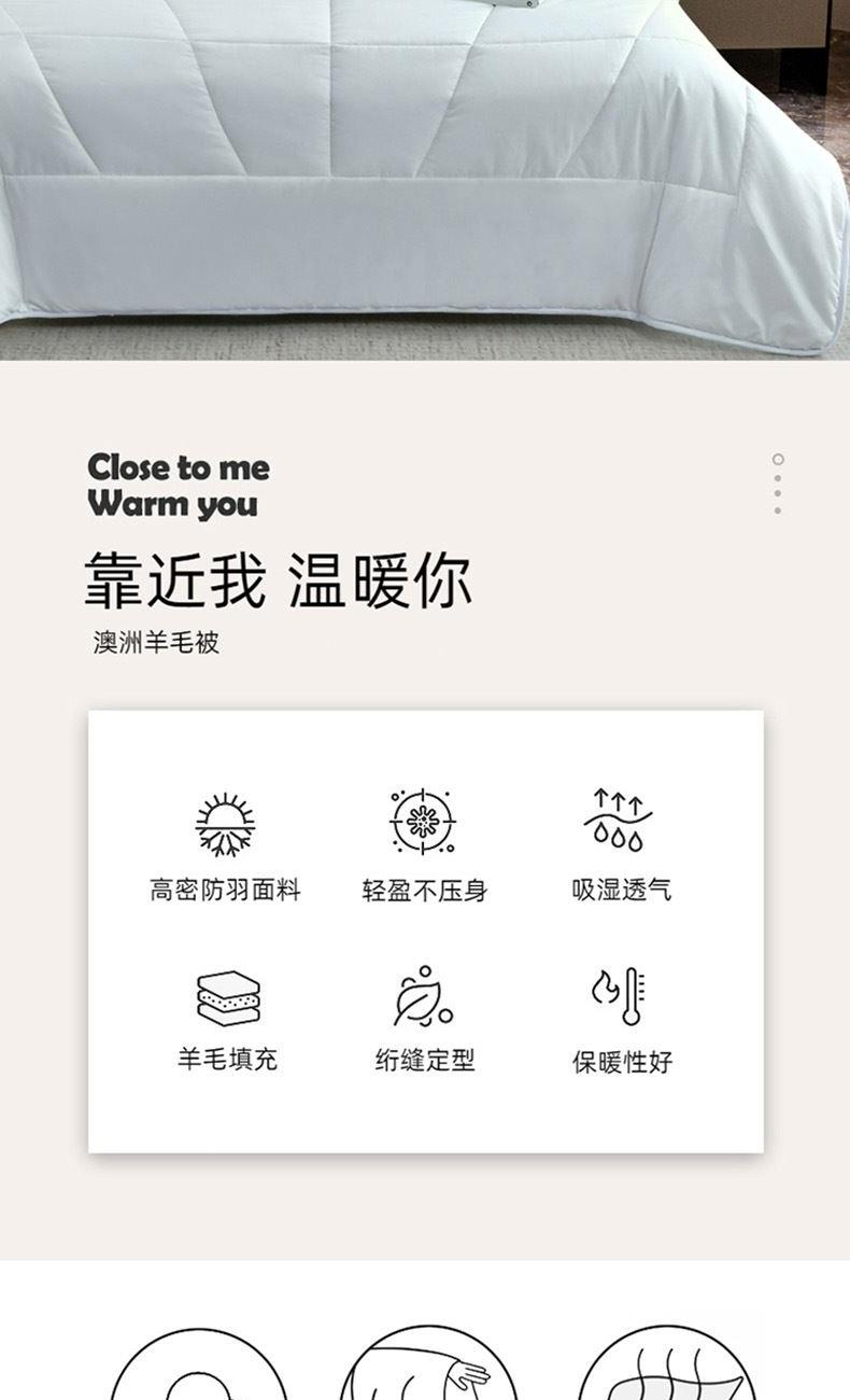 规 格:200*230cm/2600g 面 料:高密磨毛布(聚酯纤维) 填 充:51%羊毛+49%聚酯纤维 装 箱数:8床/箱或30床/包
