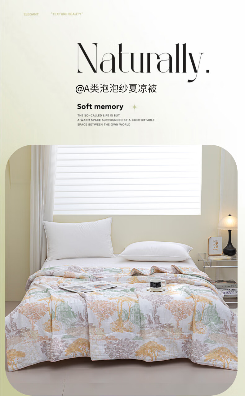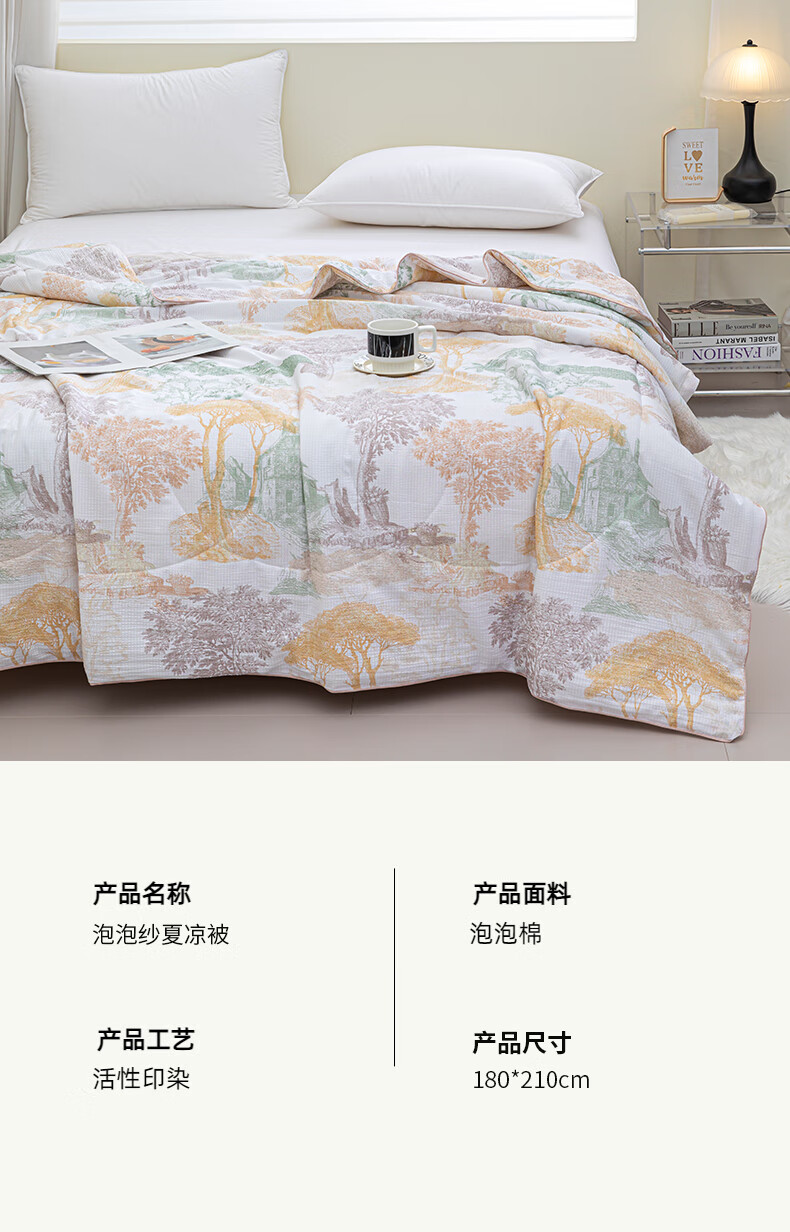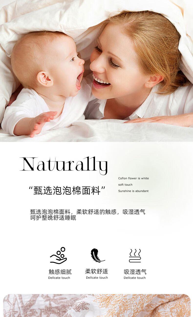 面 料: 泡泡纱 填 充: 整张羽丝棉 规 格: 180*210cm 克 重: 1150g 包 装: 手提盒