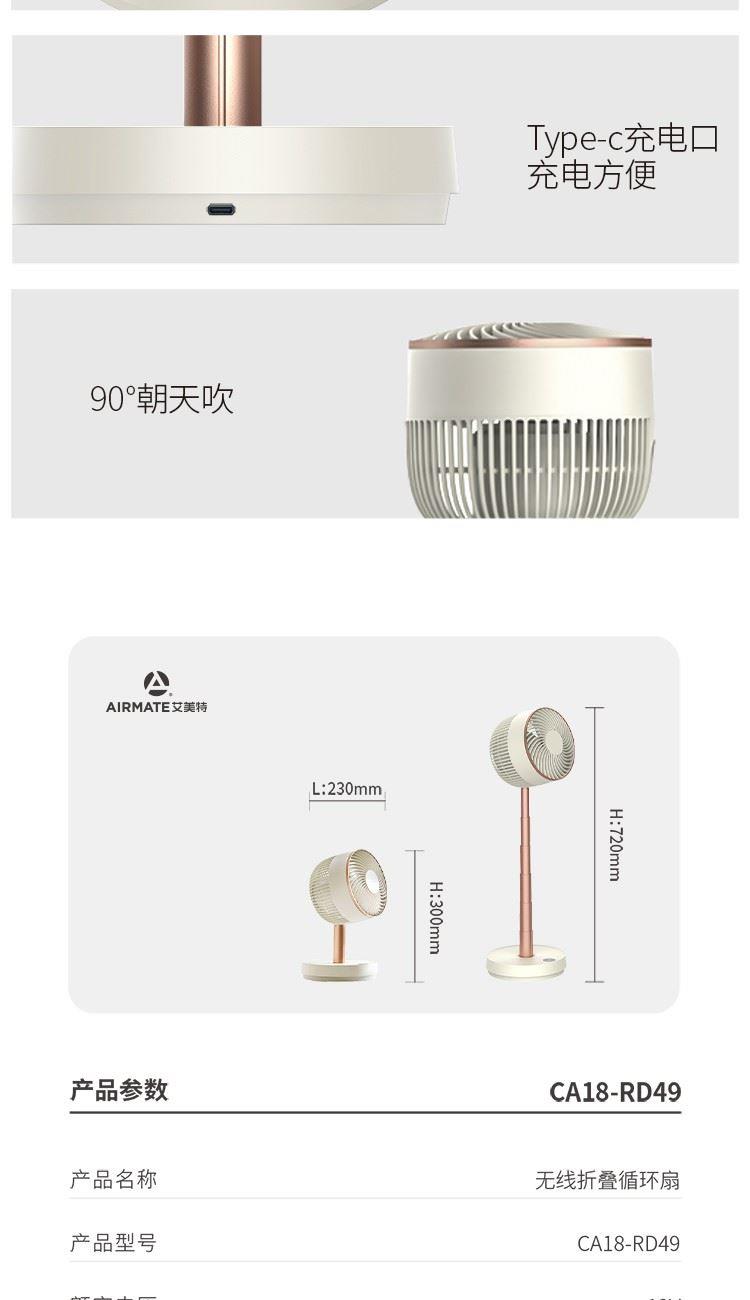 艾美特潘多拉无线折叠循环扇CA18-RD49(白色)