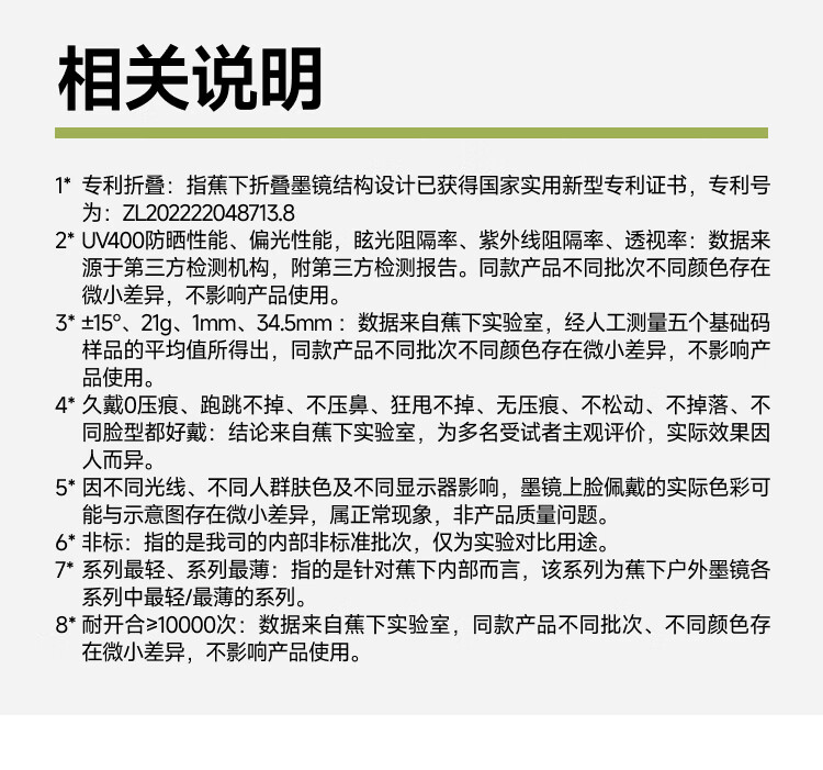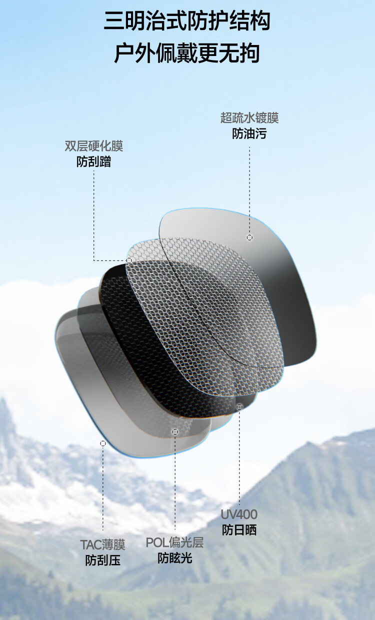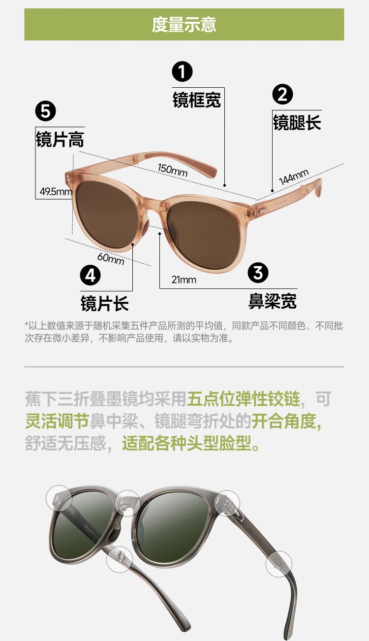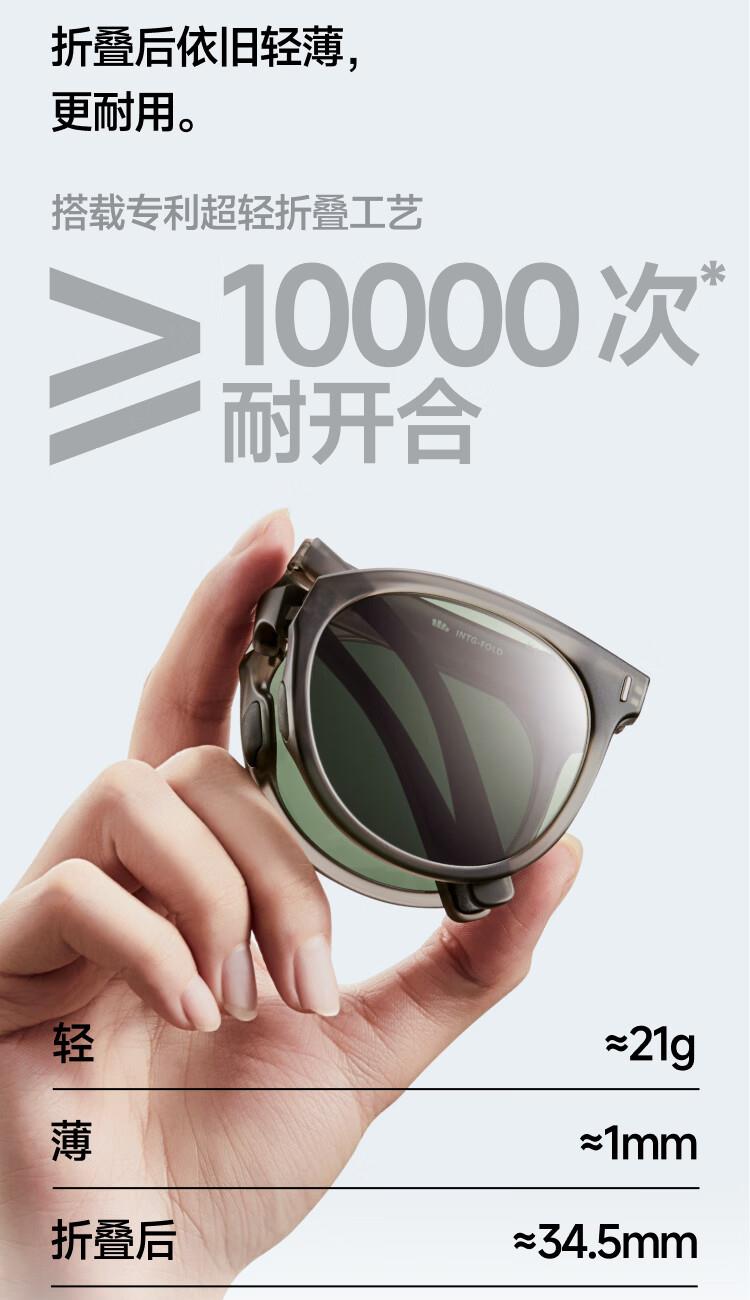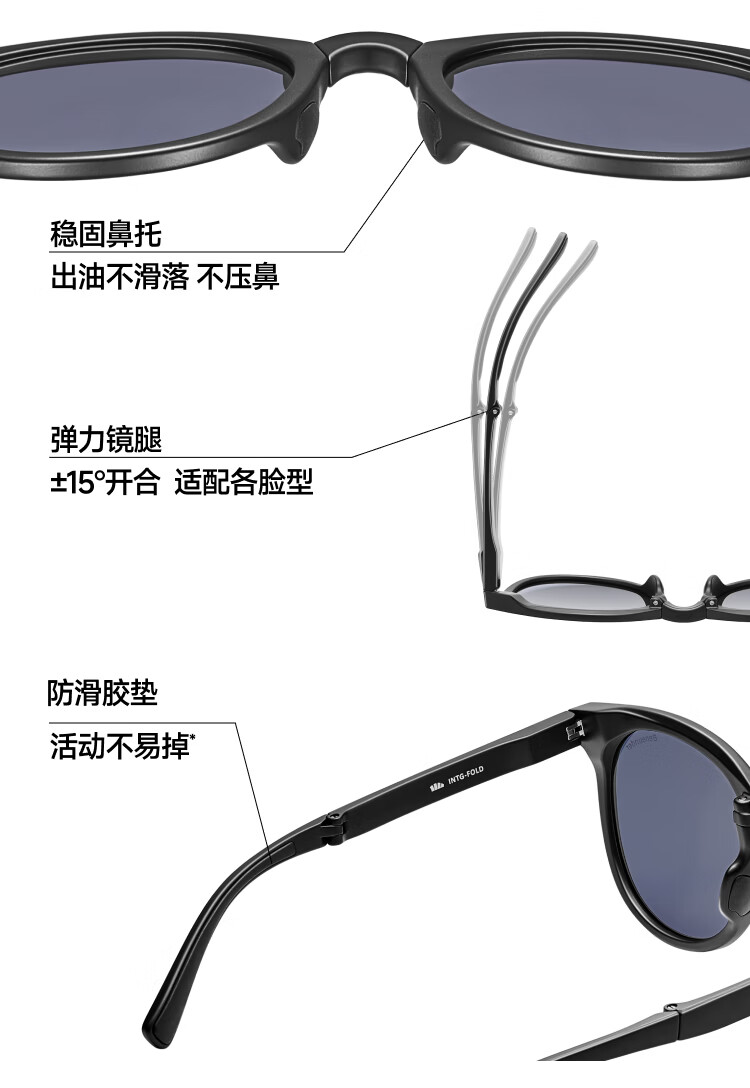 UV400偏光防晒镜片抵御有害光、安全护眼 专 利折叠镜架超轻超薄、一叠就GO 适配多种镜架大小、上推下拉轻松戴