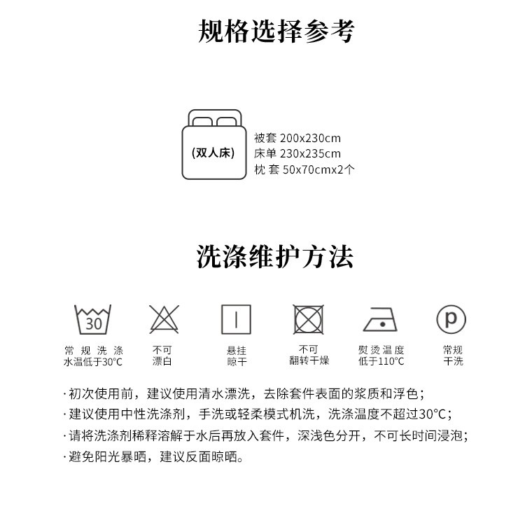 型号: 1010189054 规 格:被套:200*230cm*1床 床单:230*235cm*1床 短枕:50*70cm*2个 面料:100 %纯棉 包 装:红色礼盒+手提袋 条形码:6909338183239