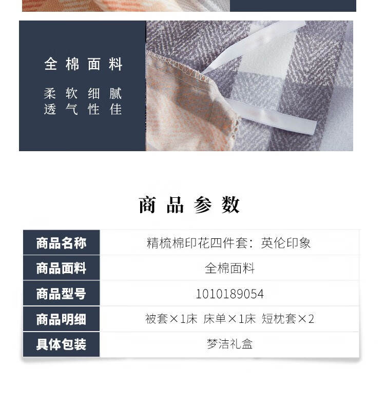 梦洁精梳棉印花四件套:英伦印象1010189054