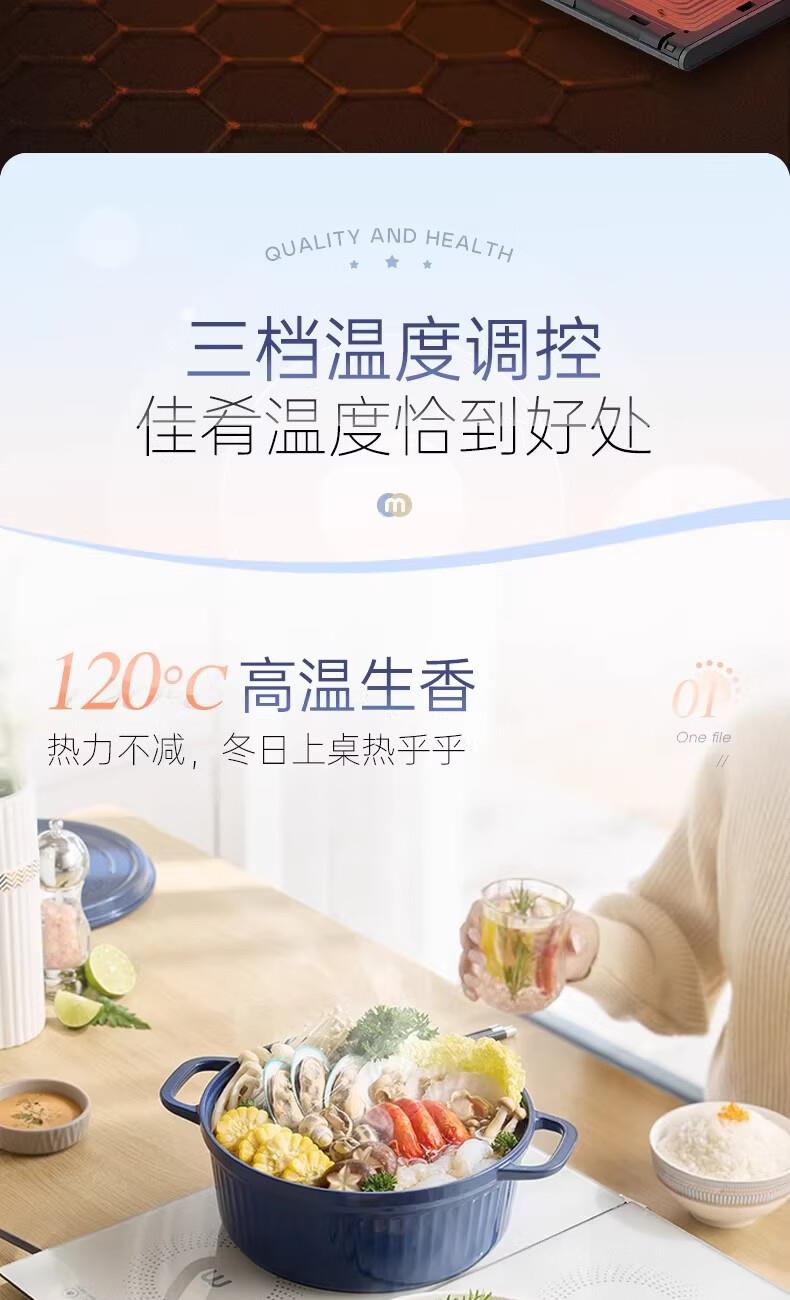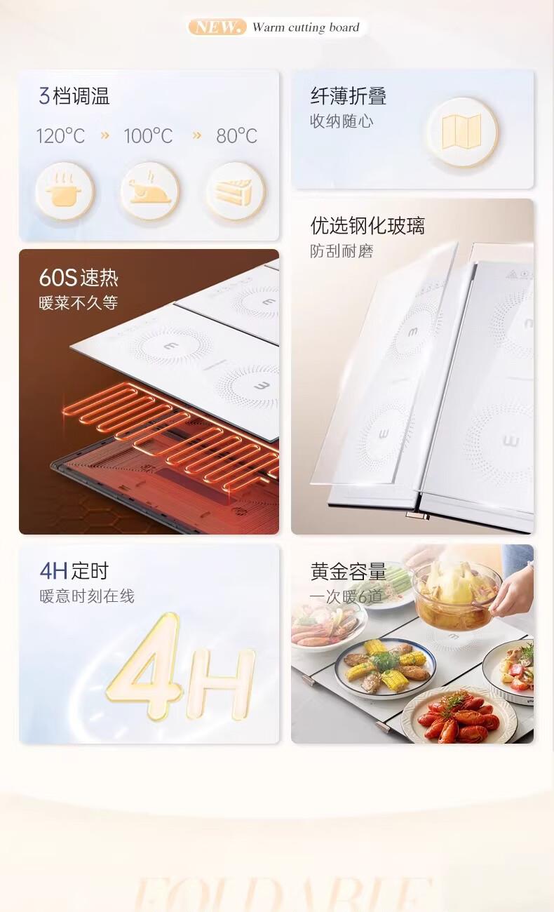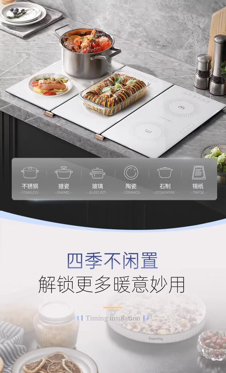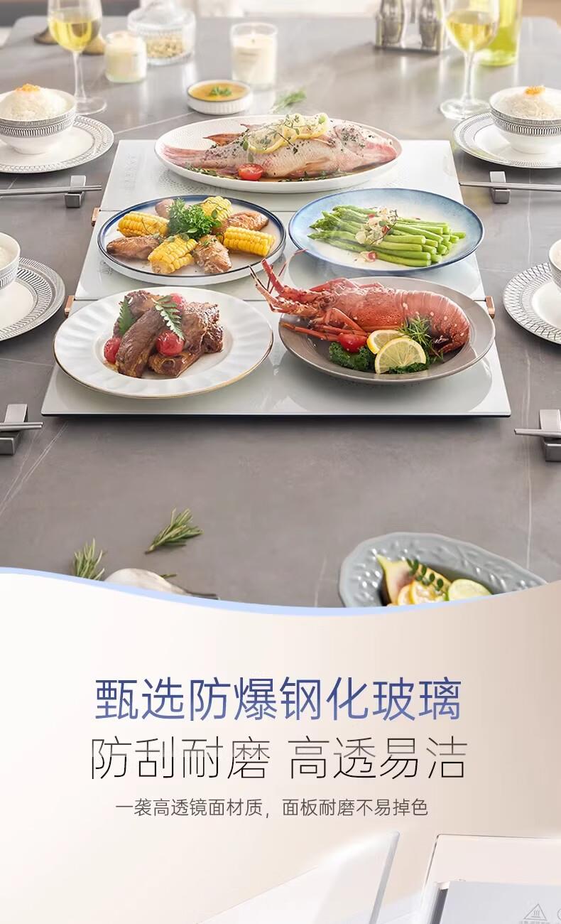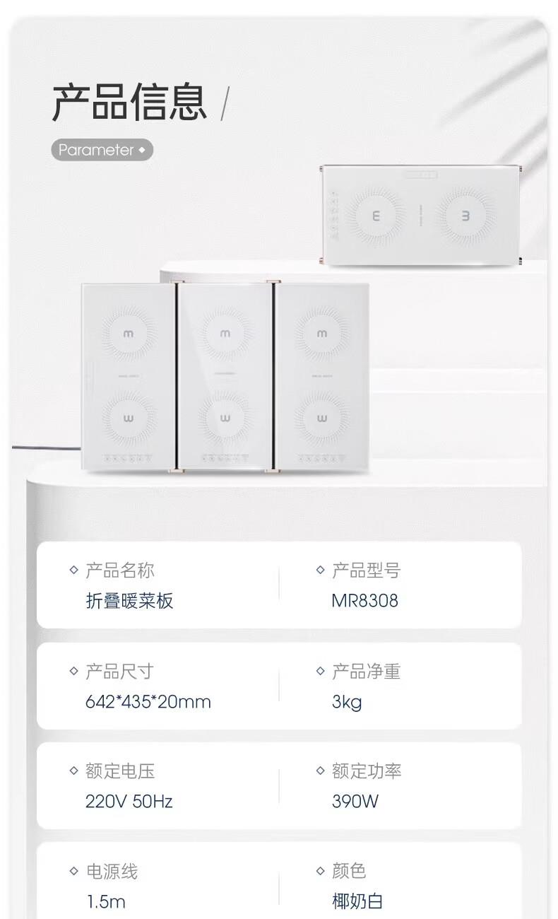 功率:暖菜390W 重量:3.5kg 装 箱数:1台 /箱 产品尺寸:642*435*20 外箱尺寸:270*138*513 颜色:白色