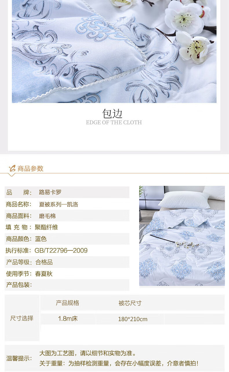 货 号:LK-8673 面 料:磨毛棉 填 充:超细纤维 规 格:180*210cm 克 重:1050g