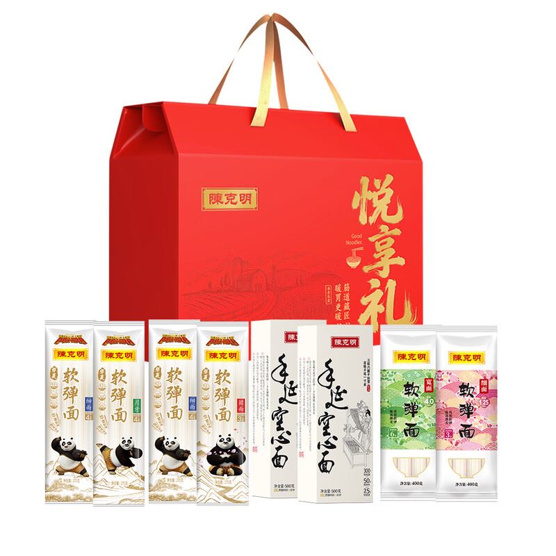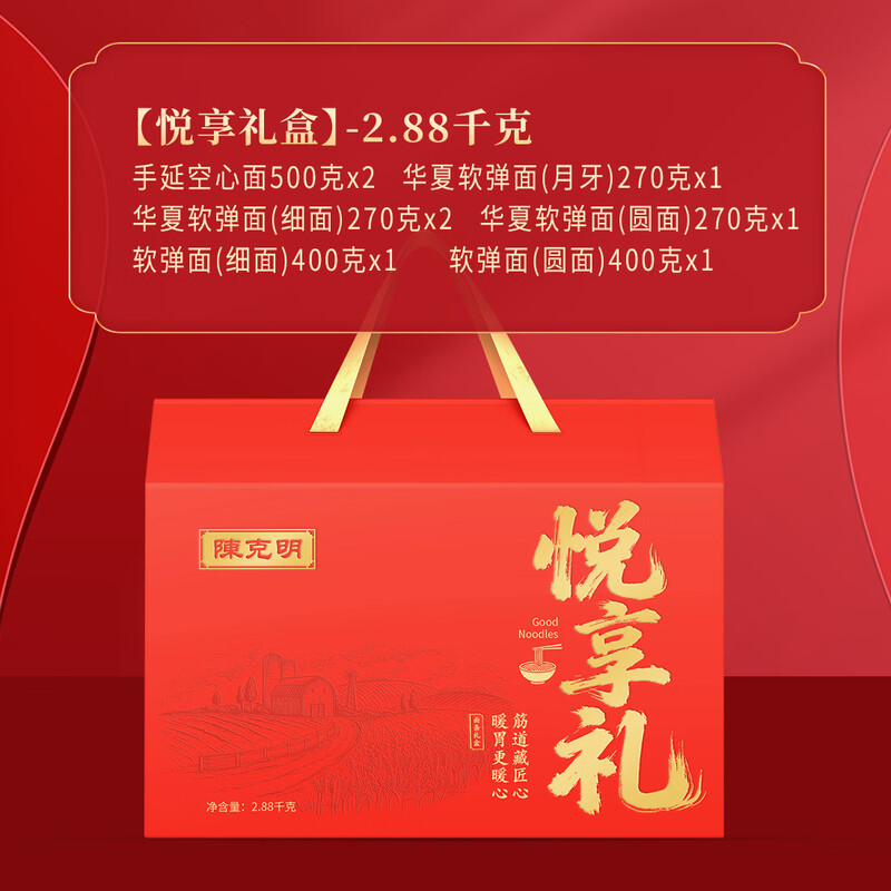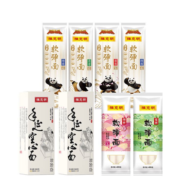 纸盒陈克明手延空心面500g(龙须1.0)*2 陈克明软弹面(细面2.0)270g*2 陈克明软弹面(圆面1.25)270g*1 陈克明软弹面(月牙3.0)270g*1 陈克明华夏软弹面(细面)400g*1(宽面)400g*1