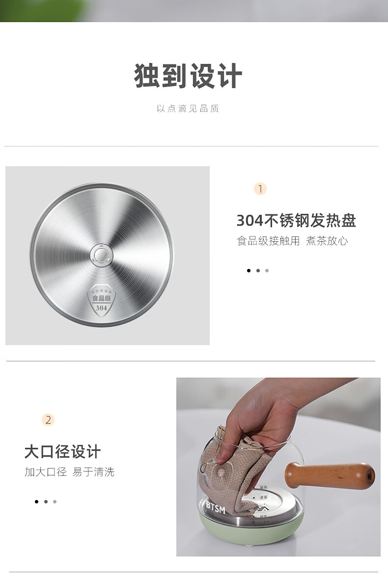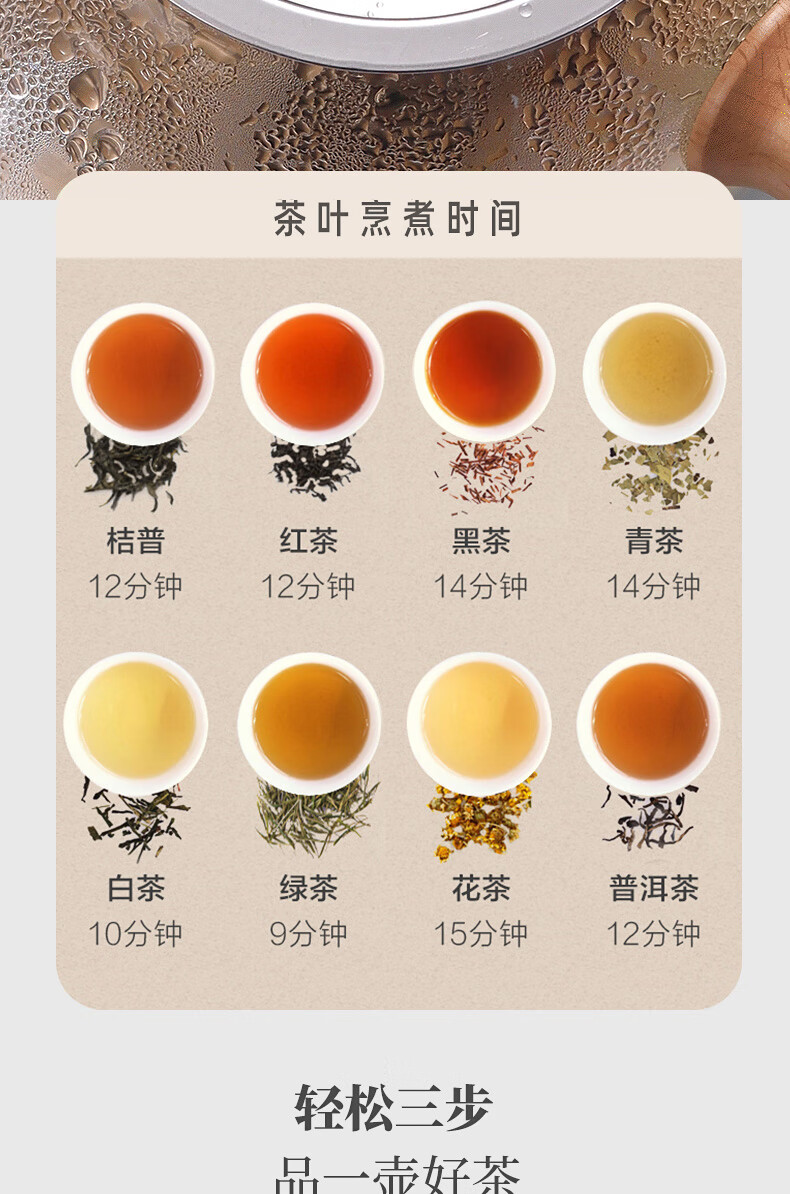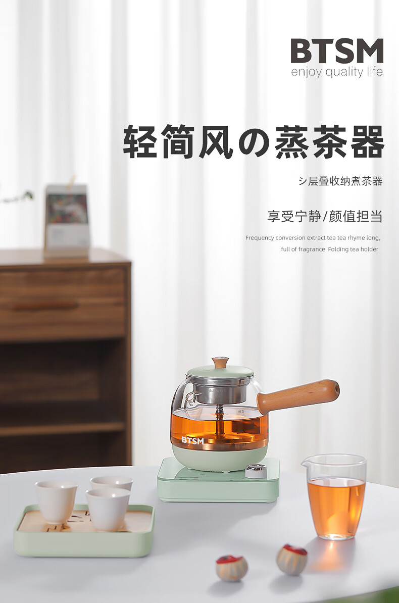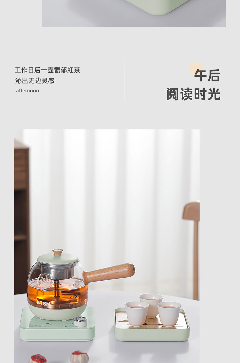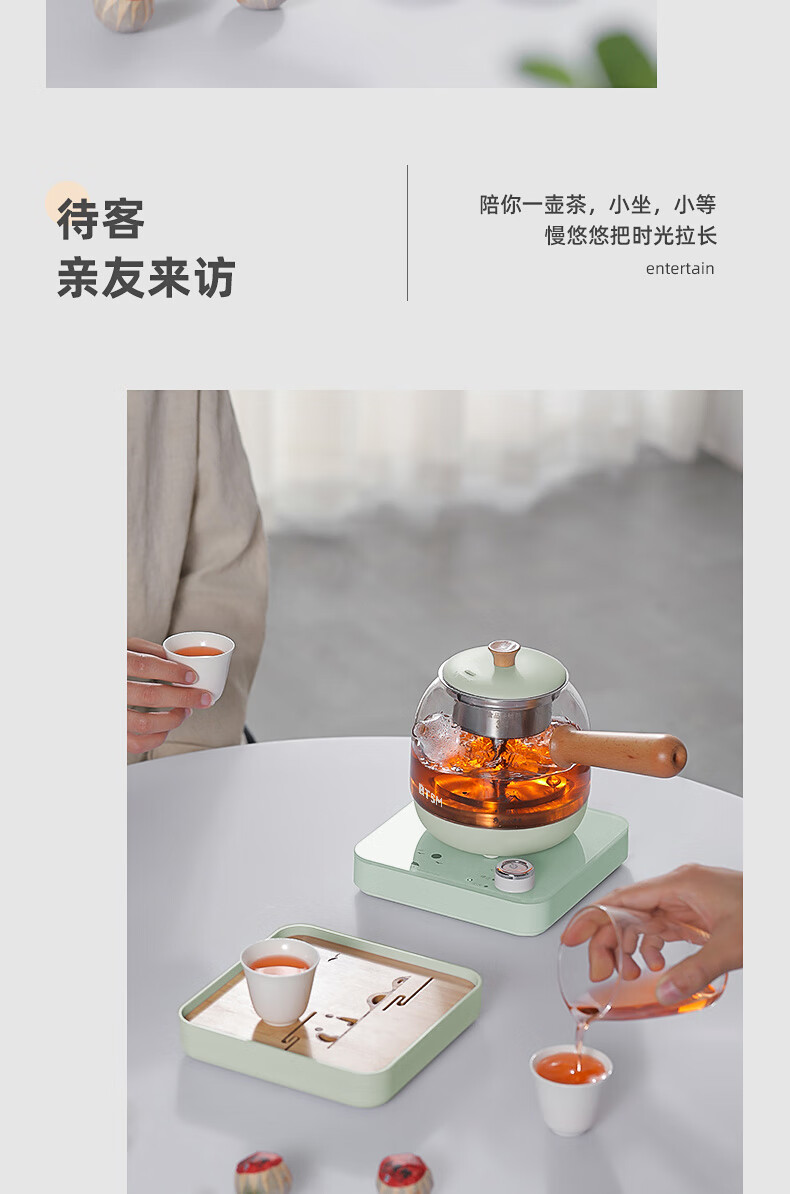 额定功率:600W 额定电源:220V~50Hz 额定容量:500ml 产品净重:1.28kg 产品材质:高硼硅胶玻璃、304不锈钢 条形码:6971679080669 装 箱数:1*1 产品尺寸:260*168*221mm 彩箱尺寸:355*212*208mm 邮购箱尺寸:365*212*218mm 装 箱清单:底座*1、壶体*1、蒸茶网*1、陶瓷杯*3、竹盘*1、盖子*1、电源线*1、说明书*1