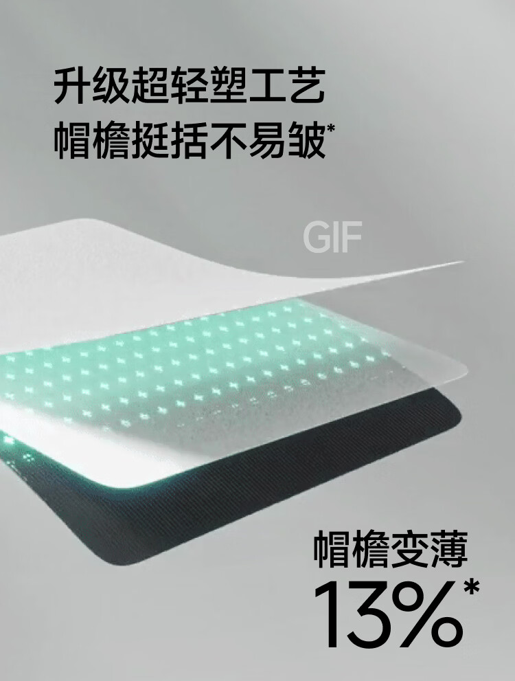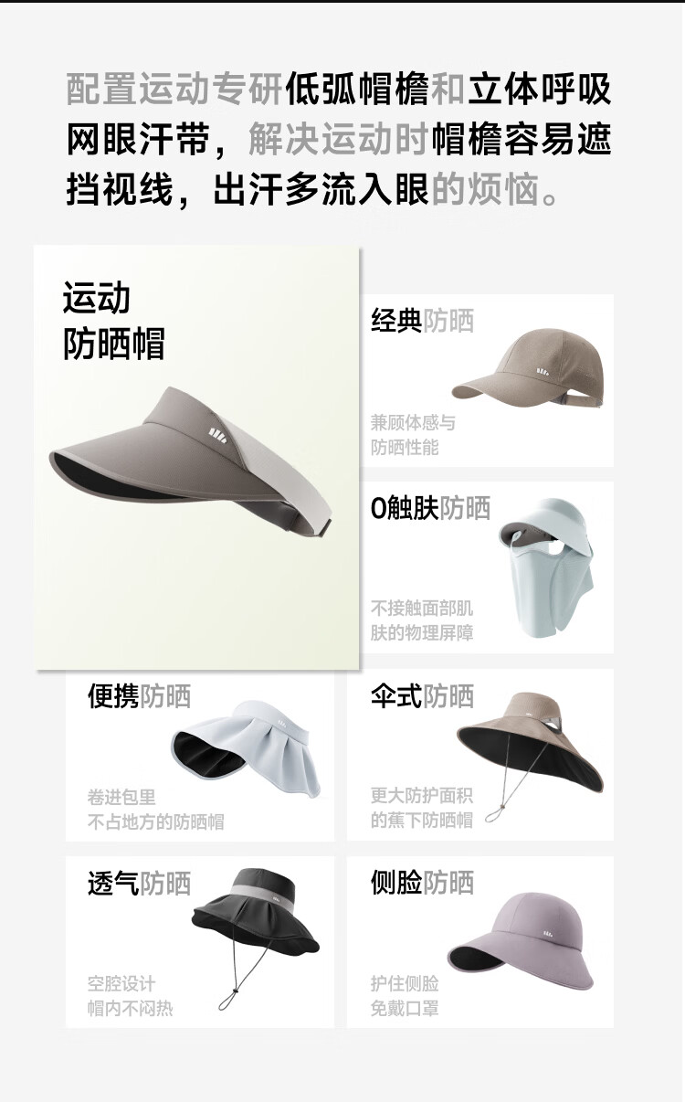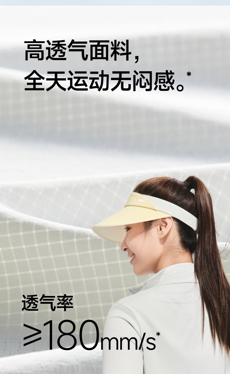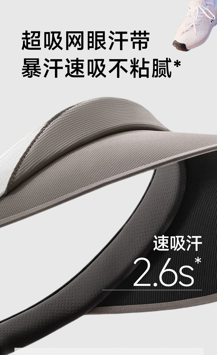 自带细腻毛巾汗带、全额吸湿速干、暴汗也干爽 帽檐科学加长2cm、防晒面积+30%、运动不挡视线 超轻薄帽身、羽毛般轻盈、运动无拘束