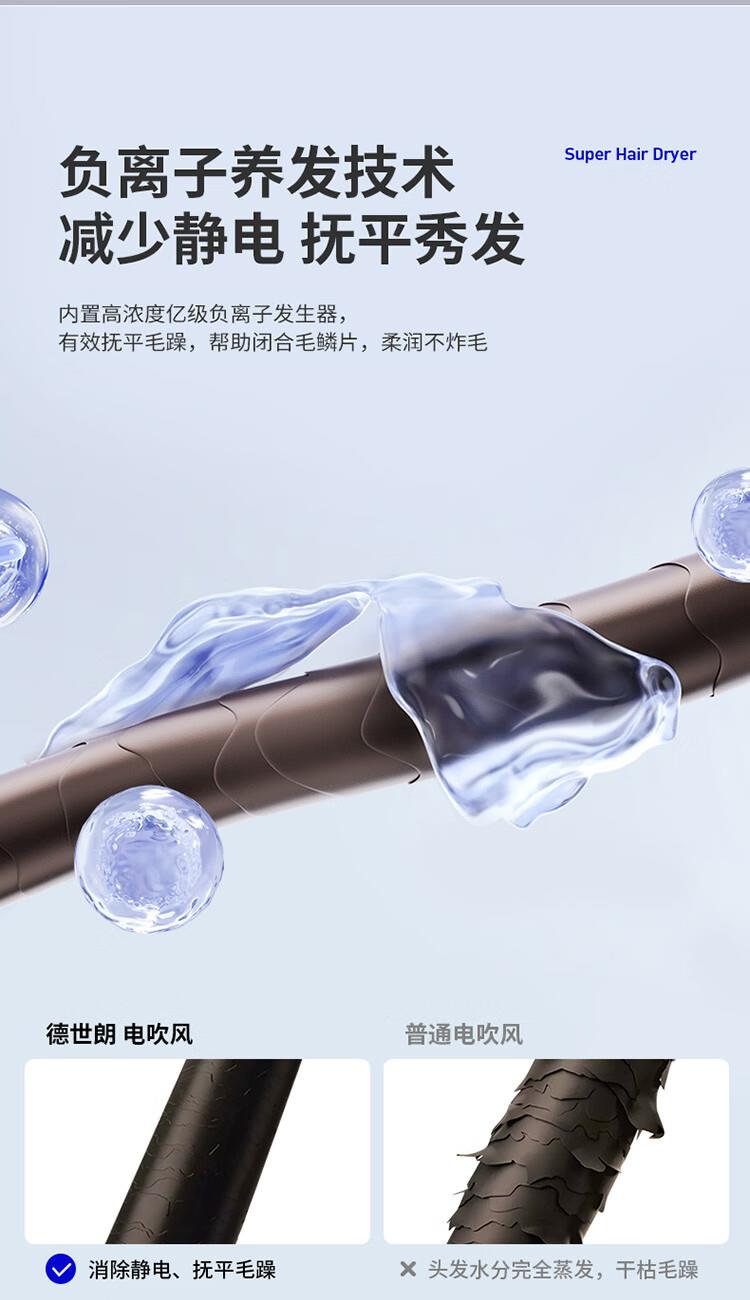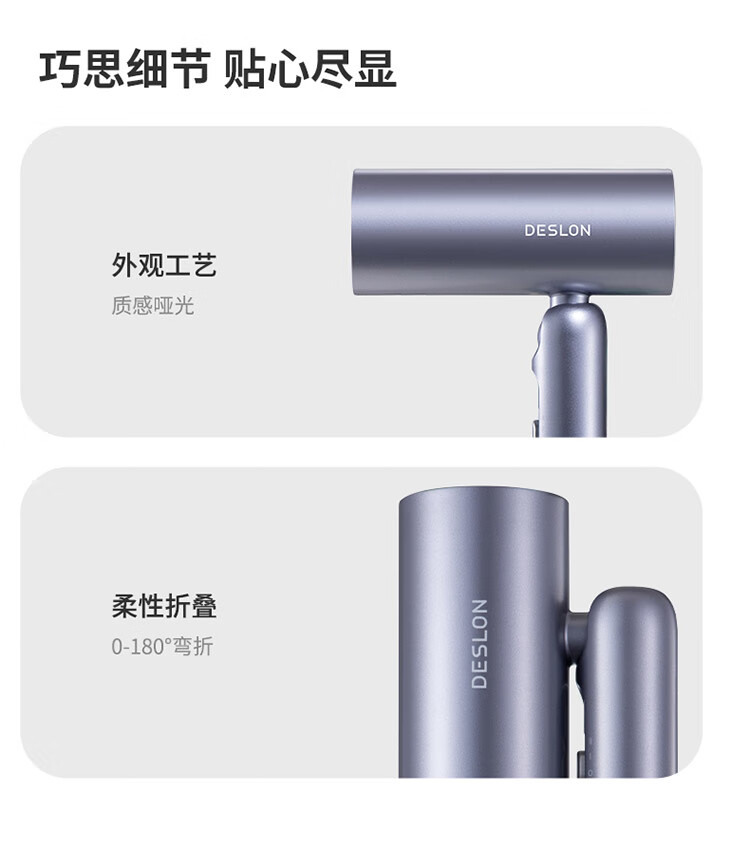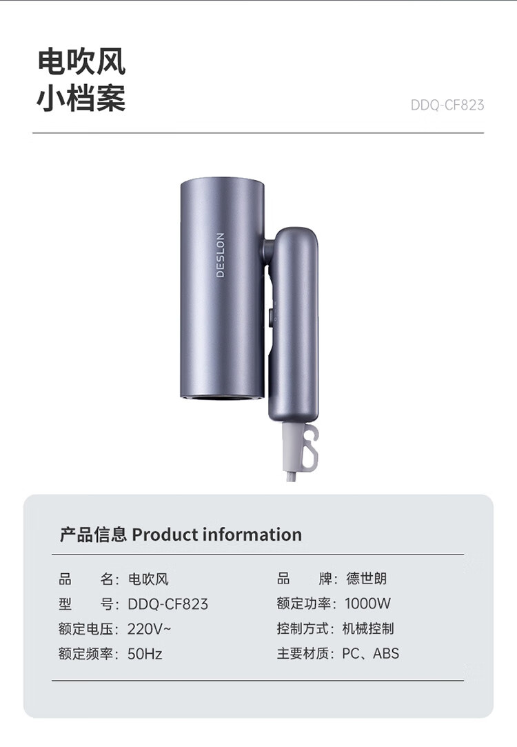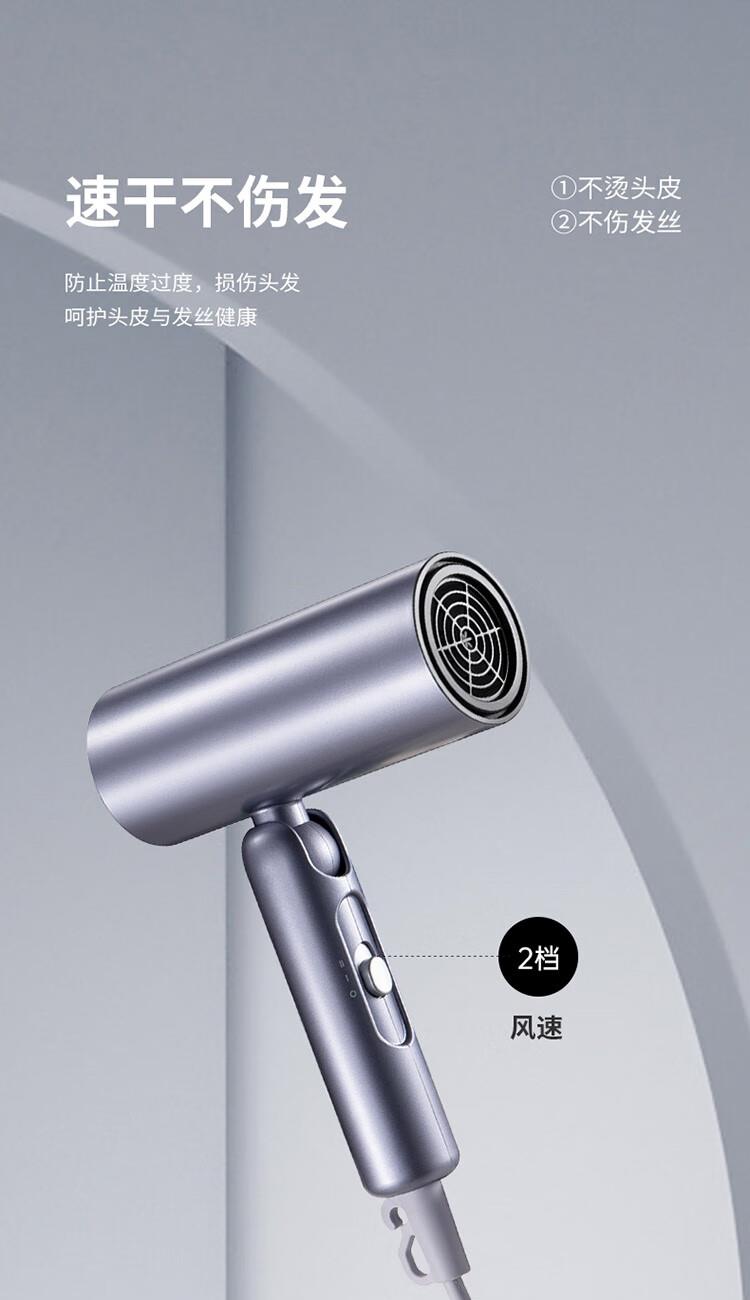额定电压:220V~ 额定功率:1000W 机器风嘴:磁吸风嘴 风速档位:两挡风速 负离子量:约2亿/ cm³ 产品材质:PC+ABS 产品条码:6952020906685 装 箱 数:21台/箱-礼盒+邮购盒+大外箱