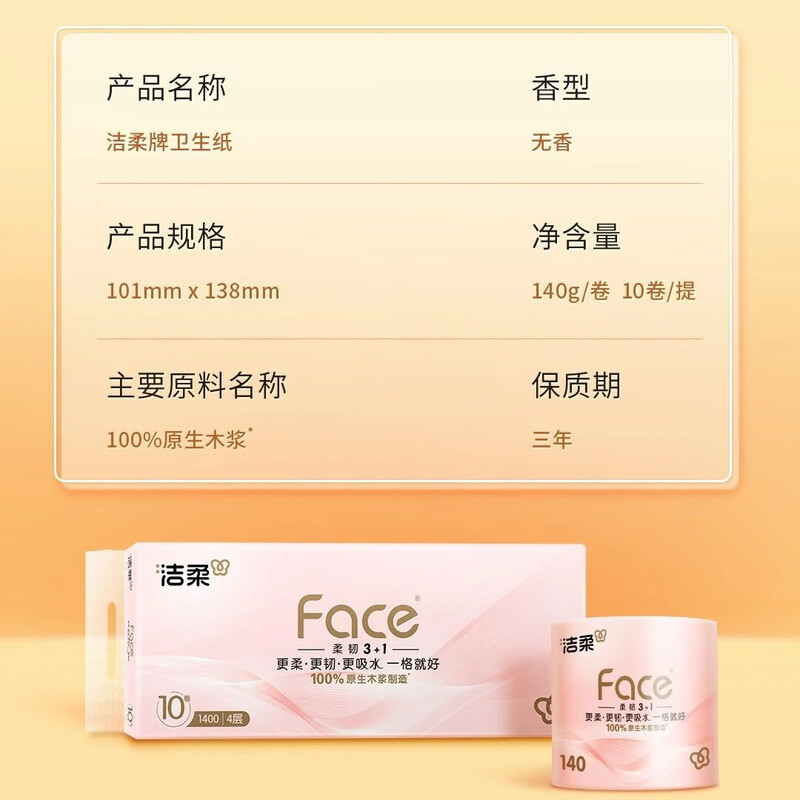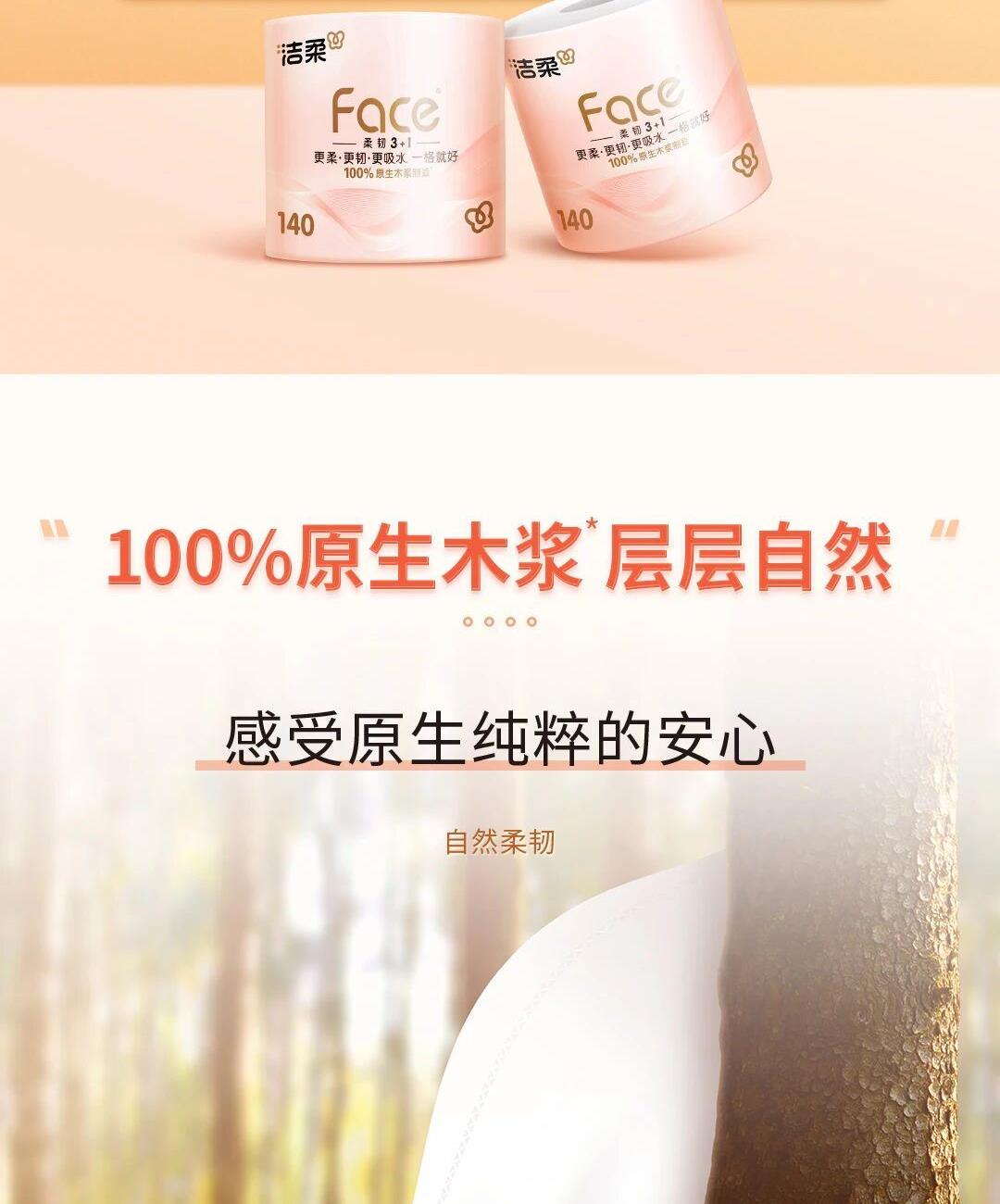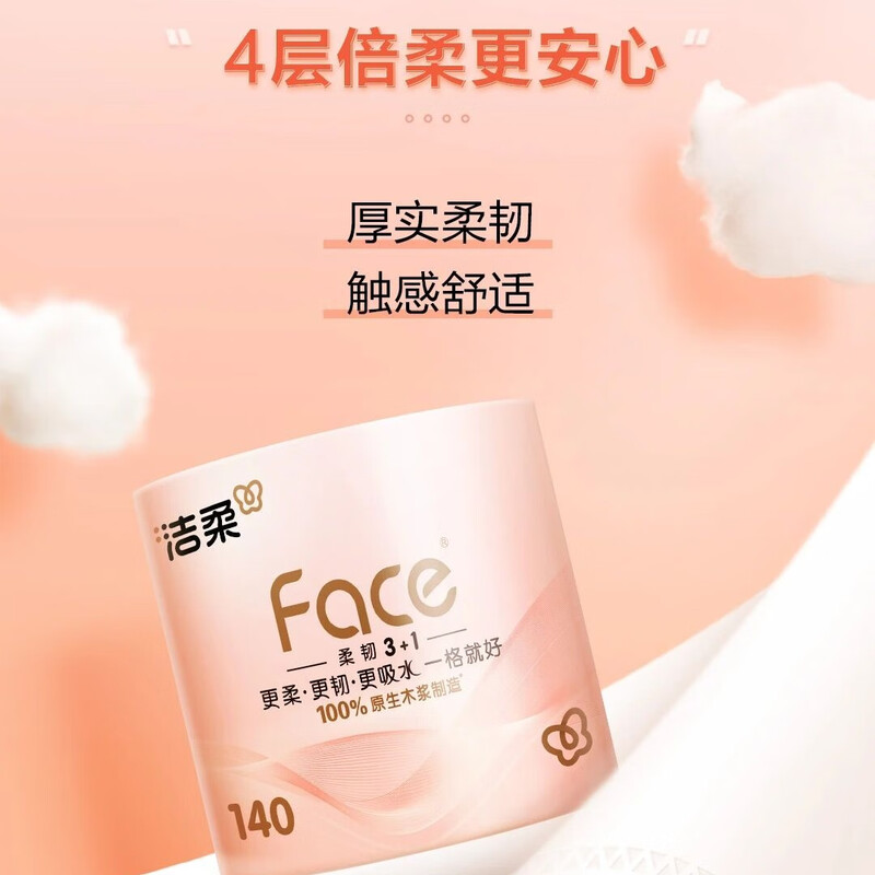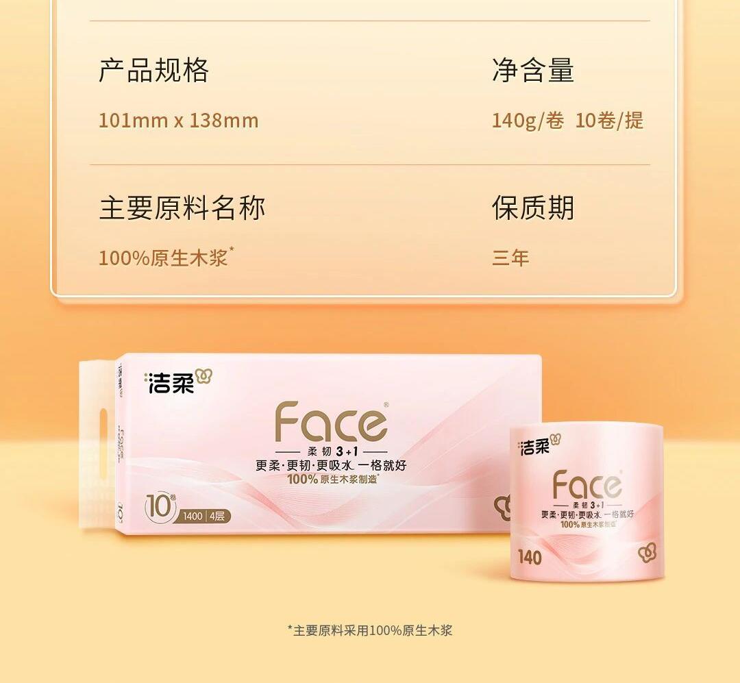 洁柔牌卫生纸(FACE粉有芯)140克4层(10卷装)