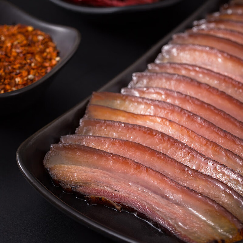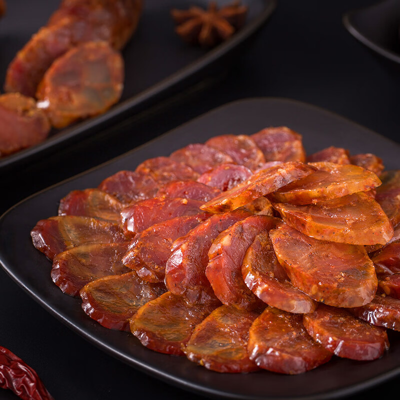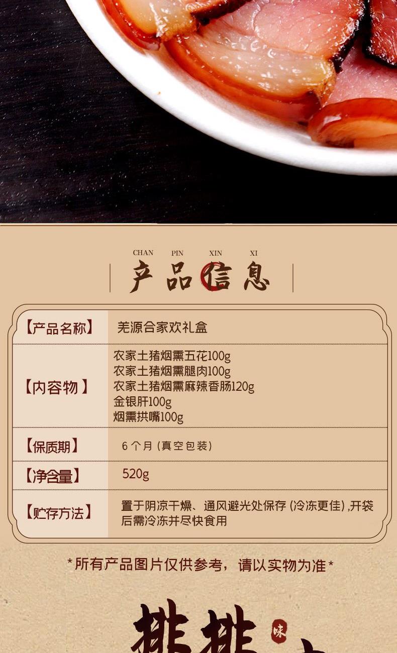 农家士猪烟薰五花100g 农家土猪烟熏腿肉100g 金银肝100g 烟熏拱嘴100g 农家士猪烟熏麻辣香肠120g