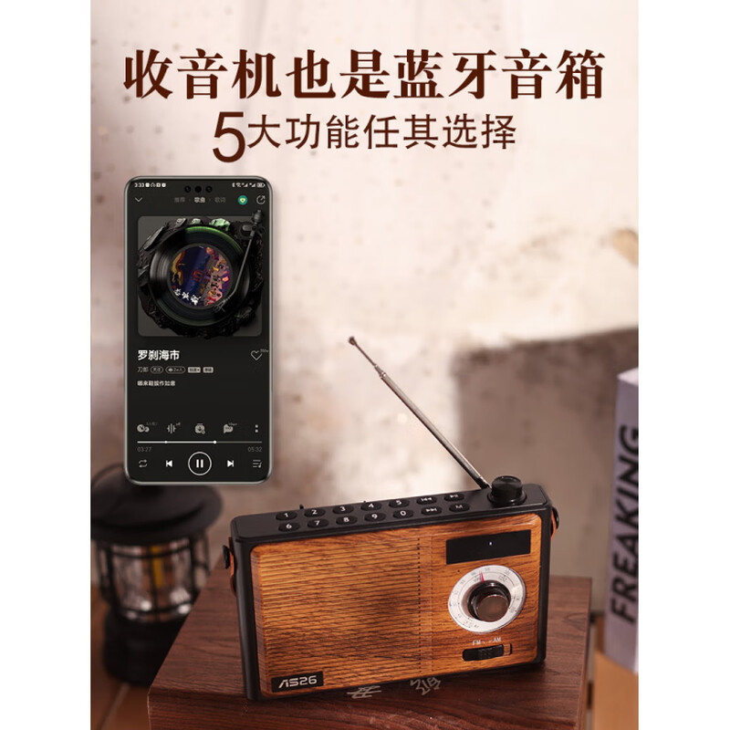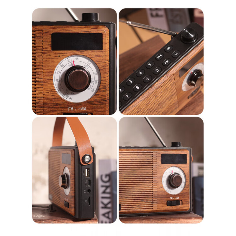 收音机双波段便携式听卡U盘可充电扬声器深木棕