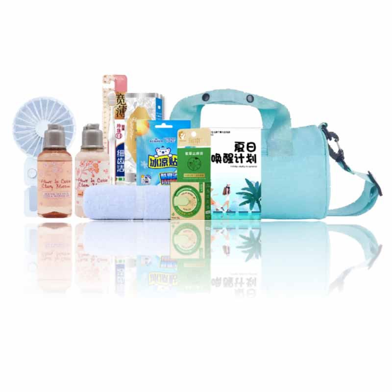 【套装配置】(香型随机/新老包装随机) 1.欧舒丹甜蜜樱花香氛亮采润肤乳35ml*1 2.欧舒丹甜蜜樱花香氛沐浴啫喱35ml*1 3.狮王细齿洁牙刷单支装*1 4.日本樱之素清新净白牙膏120g*1 5.夏日清凉马卡龙手持小风扇*1 6.海氏海诺持久凉爽冰凉贴10片*1 7.润本紫草止痒膏15g*1 8.洁丽雅臻品长绒棉毛巾(颜色随机)70g*1 9.旅行休闲斜挎包*1