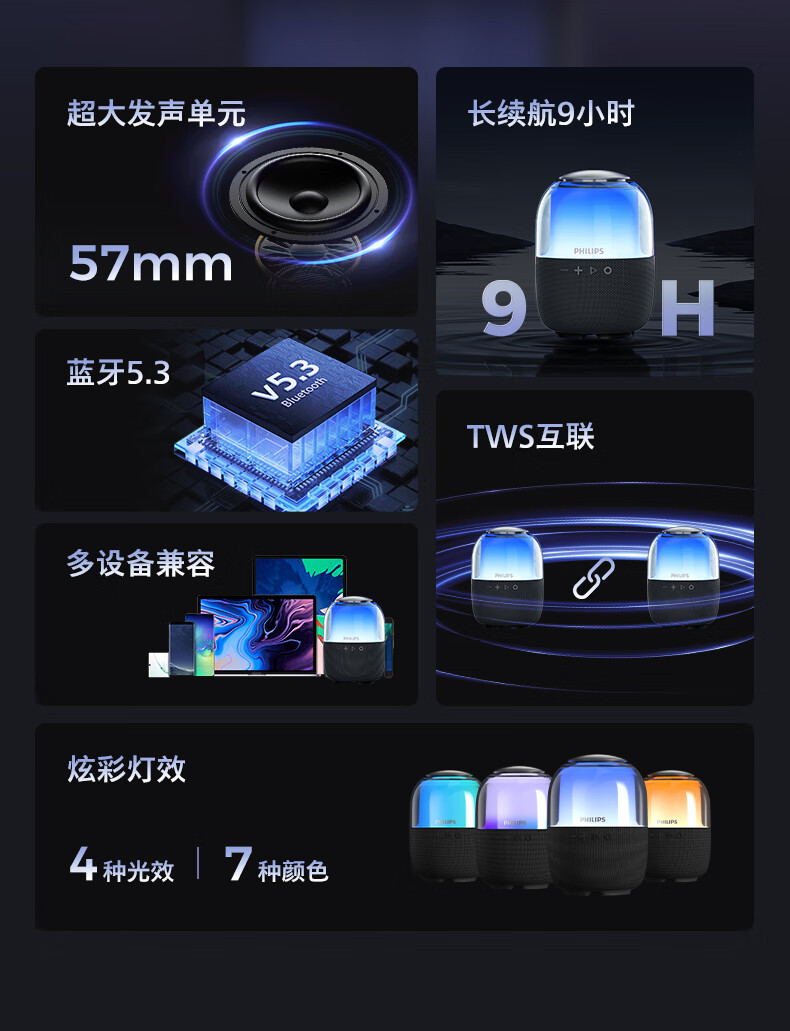 飞利浦(PHILIPS)TAS2108炫彩蓝牙音箱