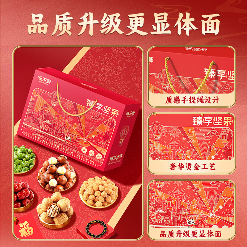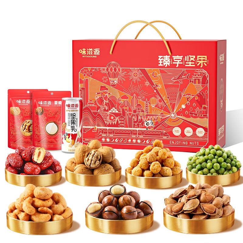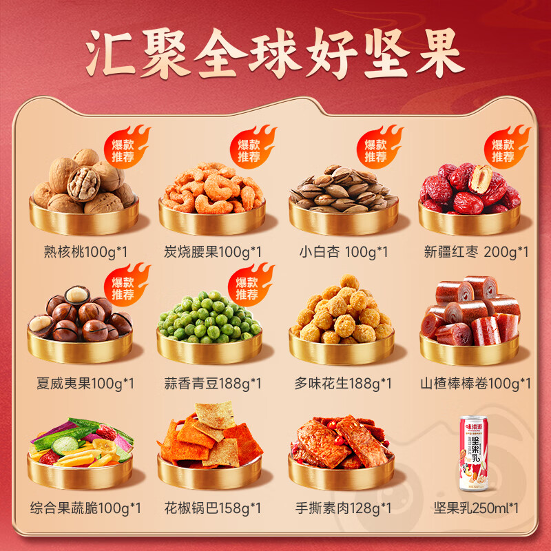 味滋源 山楂棒棒卷 100g 味滋源 手撕素肉128g(混合) 味滋源 综合果蔬脆100g(黄色) 味滋源 花椒锅巴158g(麻辣味) 味滋源 小白杏 100g (红色款) 味滋源 熟核桃 100g (红色款) 味滋源 夏威夷果 100g (红色款) 味滋源 炭烧腰果 100g (红色款) 味滋源 多味花生 188g (红色款) 味滋源 蒜香青豆 188g (红色款) 味滋源 坚果乳 250ml 味滋源 新疆红枣 200g