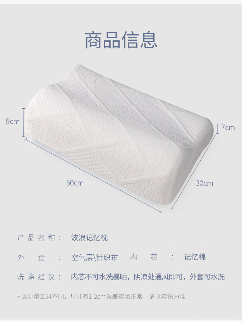 规格:35*55CM*1 面料:针织棉 填充:记忆棉 包装:无纺布包