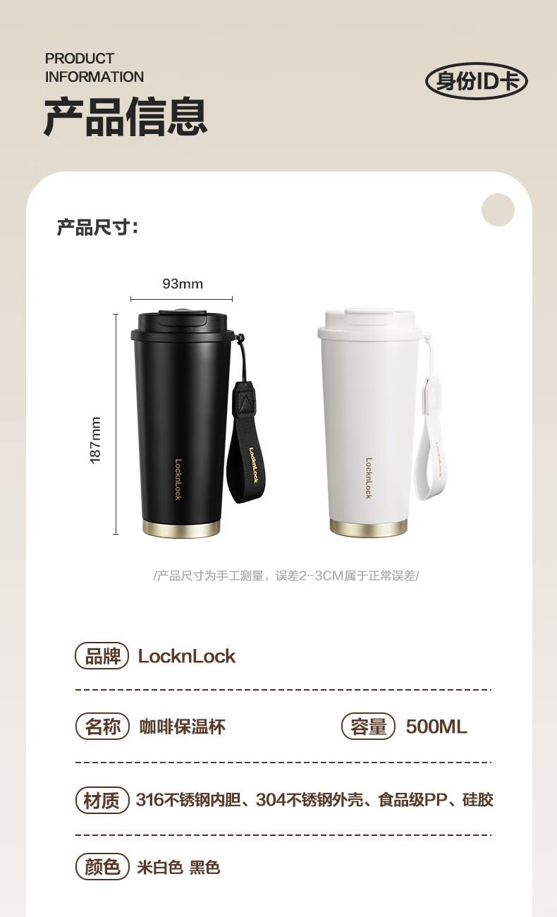 乐扣乐扣LHC4423BLK不锈钢咖啡保温杯500ML