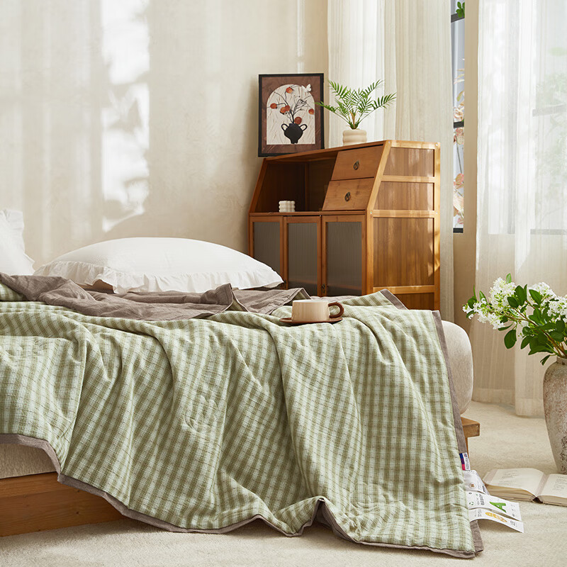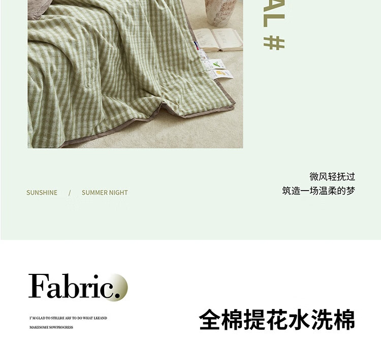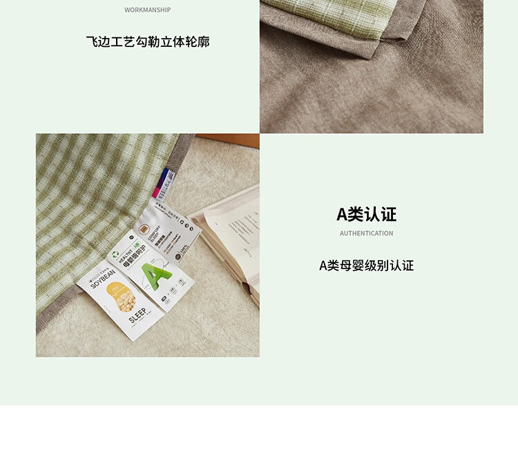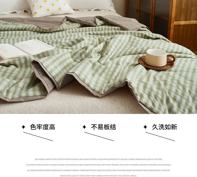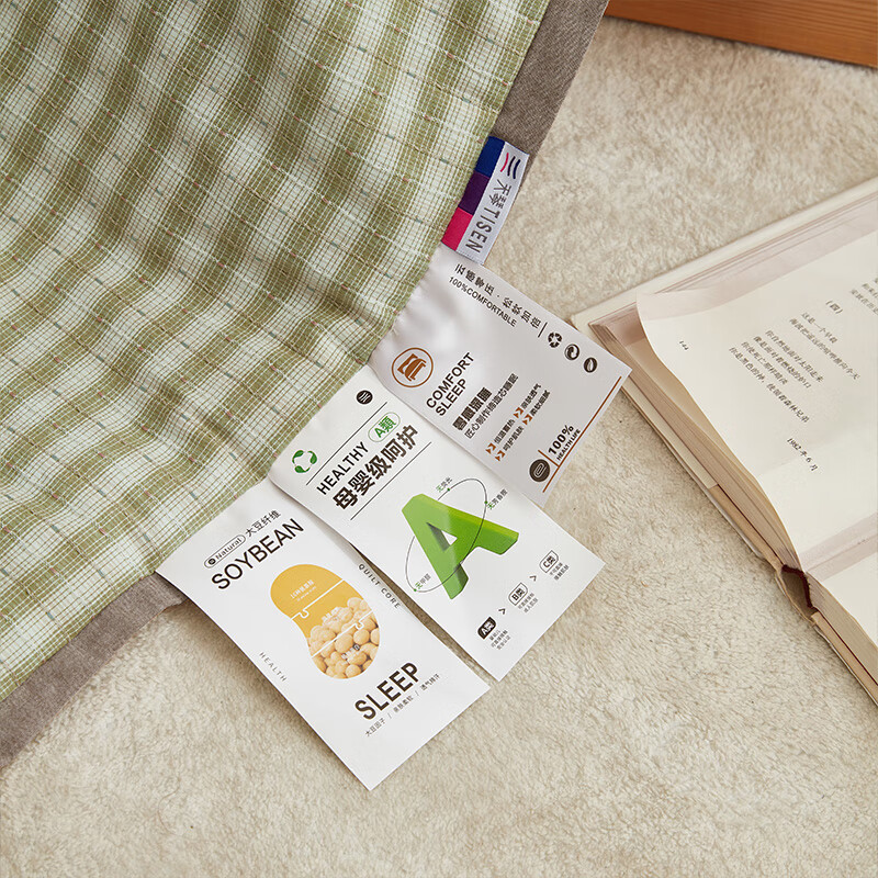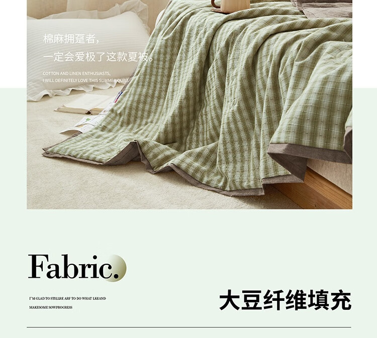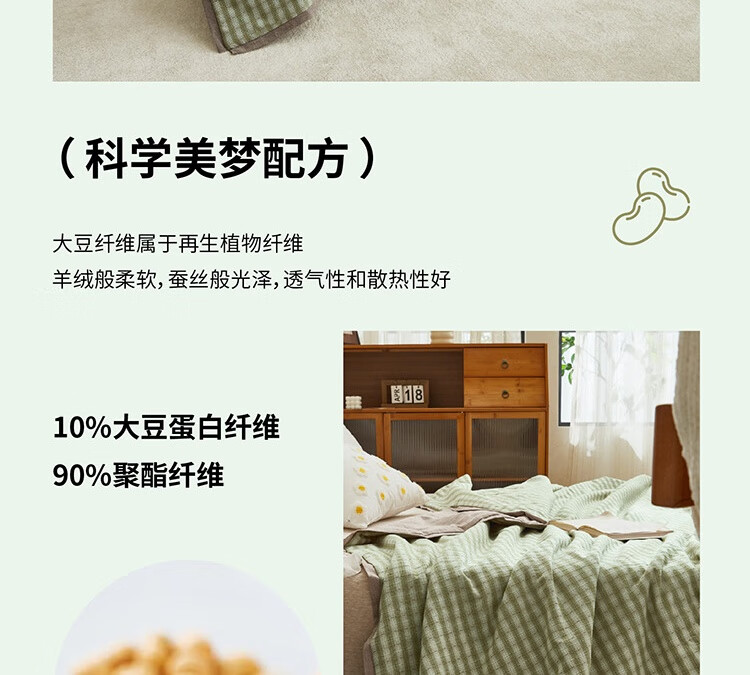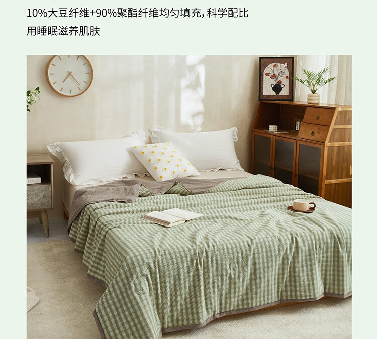 规格:200x230cm 材质:纯棉 填充物:大豆纤维+聚酯纤维 填充物净重:500g 装 箱数:18条/箱