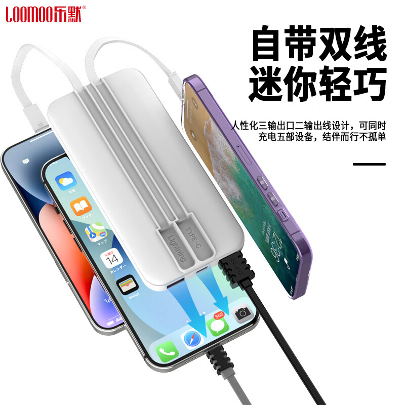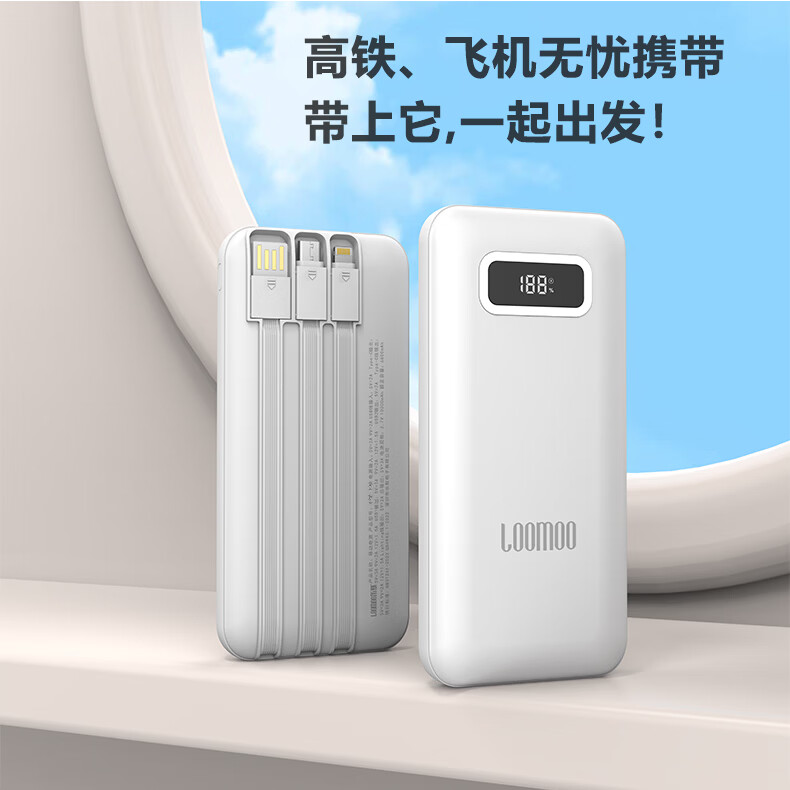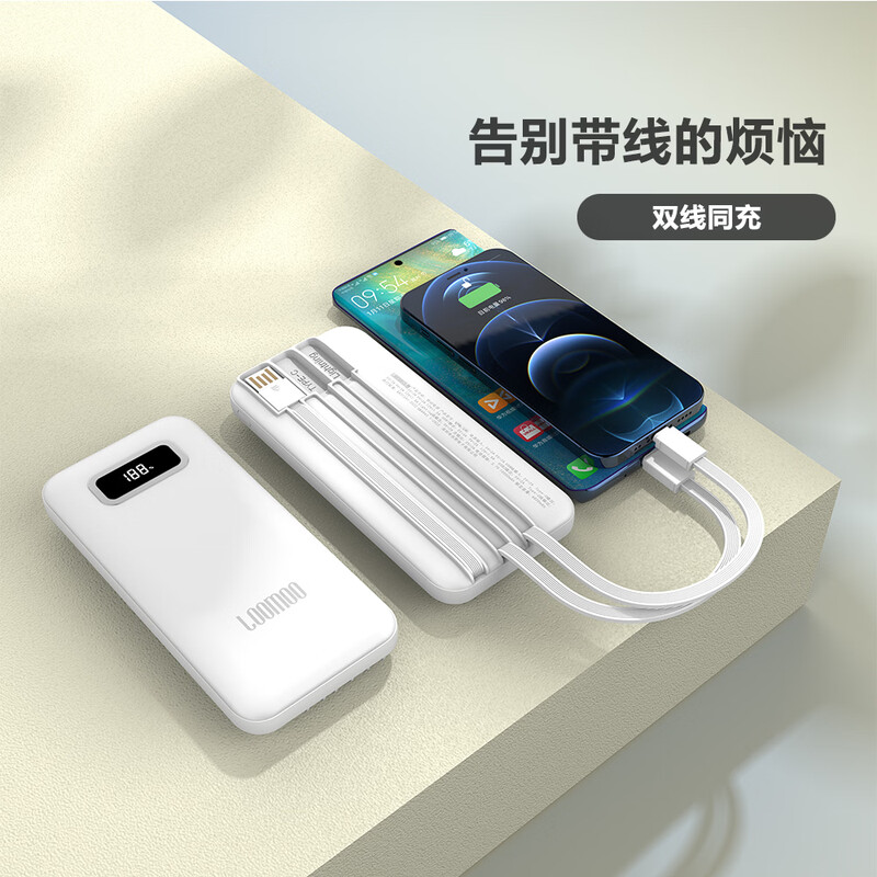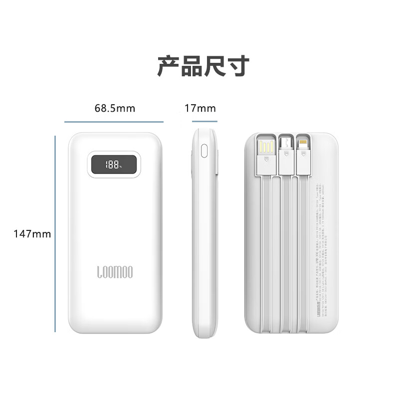 乐默快充自带线数显10000毫安移动电源