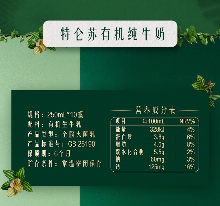 特仑苏有机纯牛奶全脂灭菌乳利乐梦幻盖250ml×10包