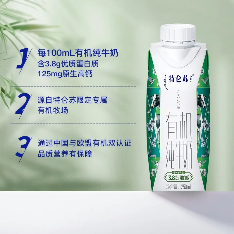 特仑苏有机纯牛奶全脂灭 菌乳利乐梦幻盖250ml×10包