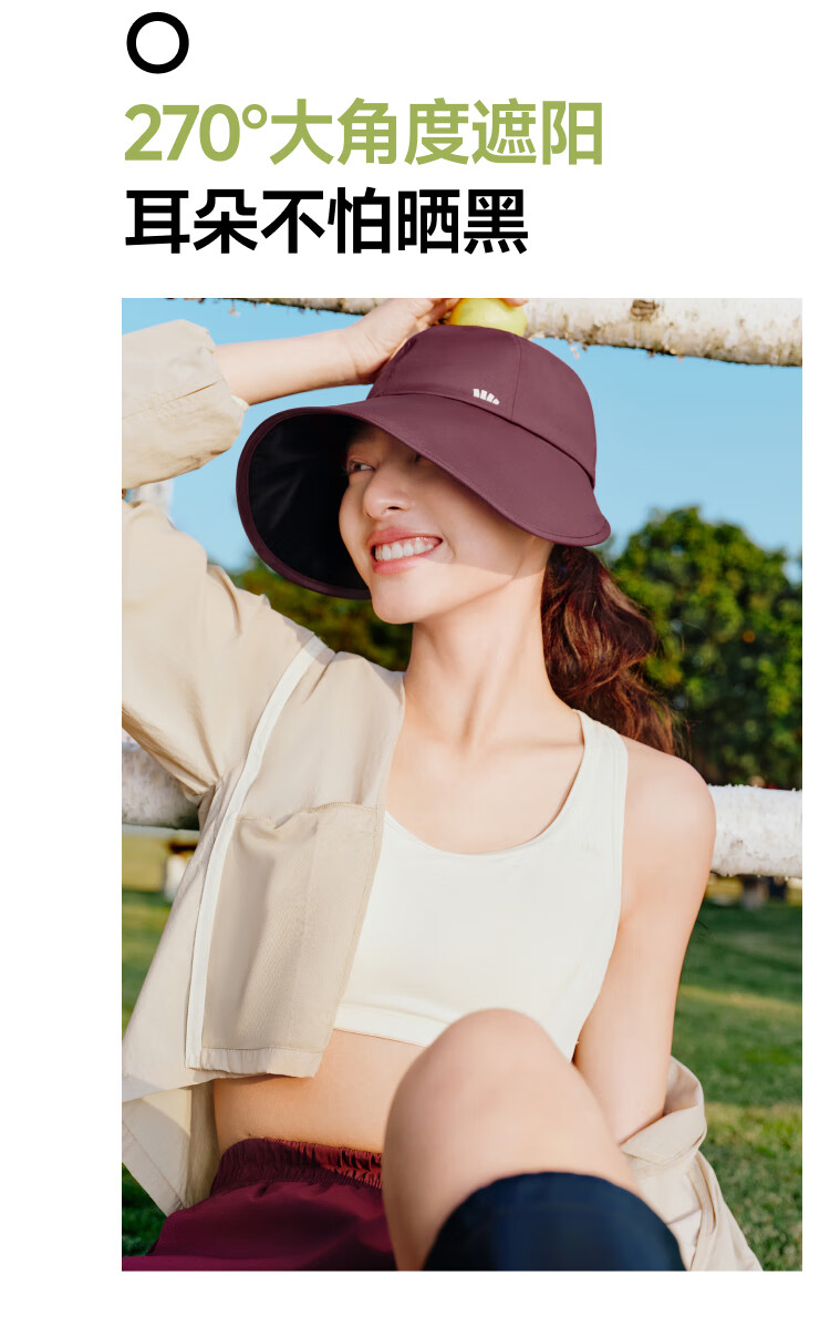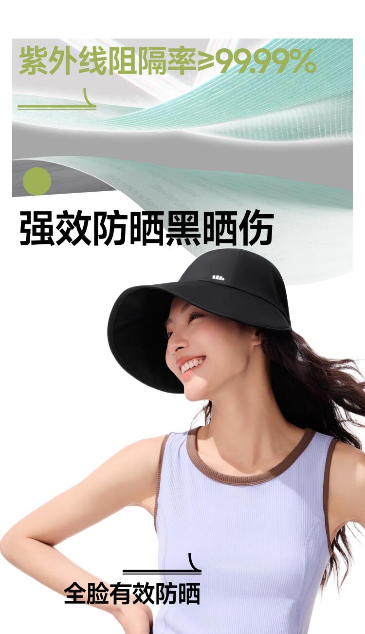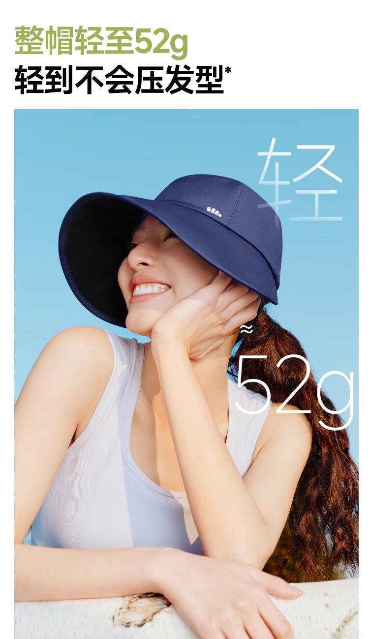 UPF100+、侧脸全遮光防晒至耳朵帽面防泼水、突发小雨一甩即干L.R.C黑胶防晒科技、抵御日晒光老 无惧皮肤热损伤轻≈52g、轻盈佩戴不压发