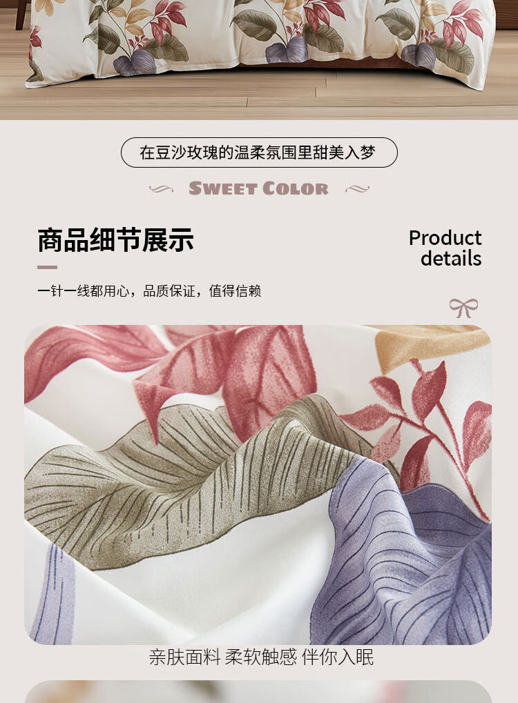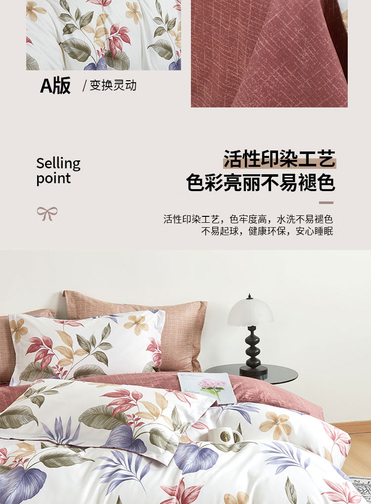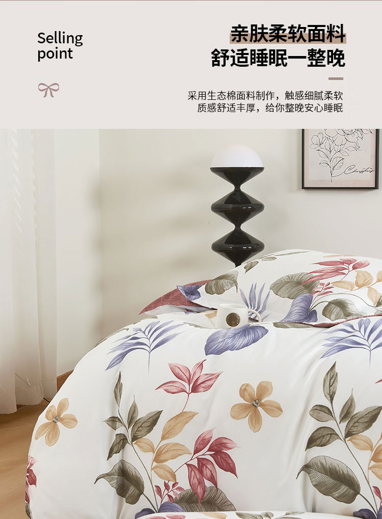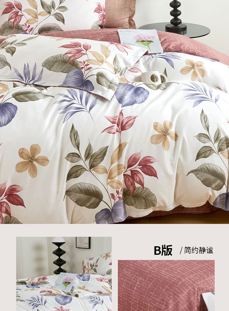 货 号:LK-6263 面 料:聚酯纤维 规 格:被套:200*230cm 床单:230*230cm 枕套:48*74cm*2