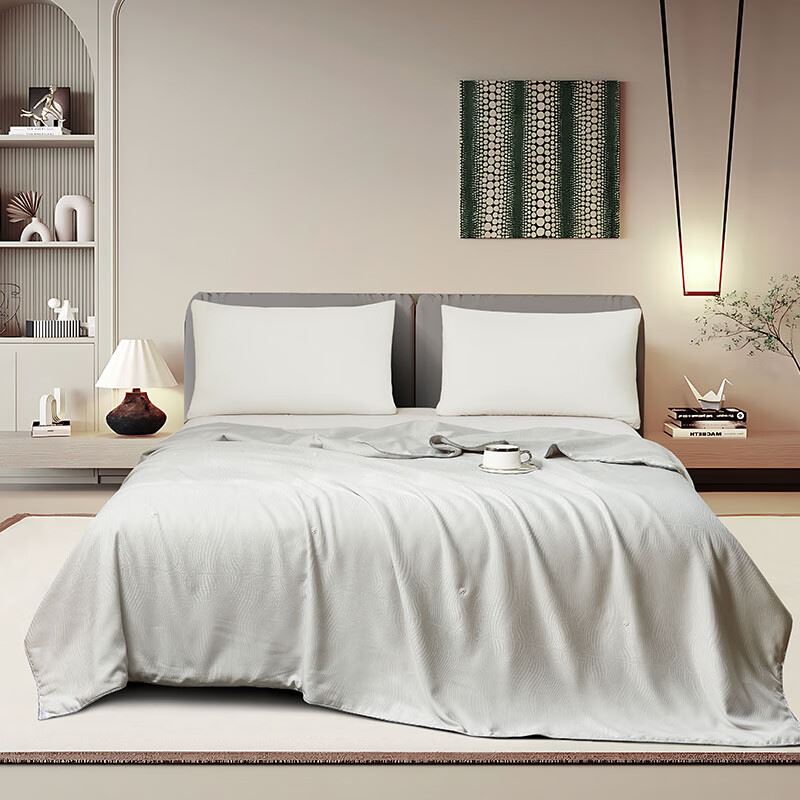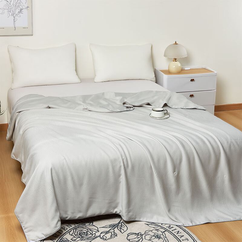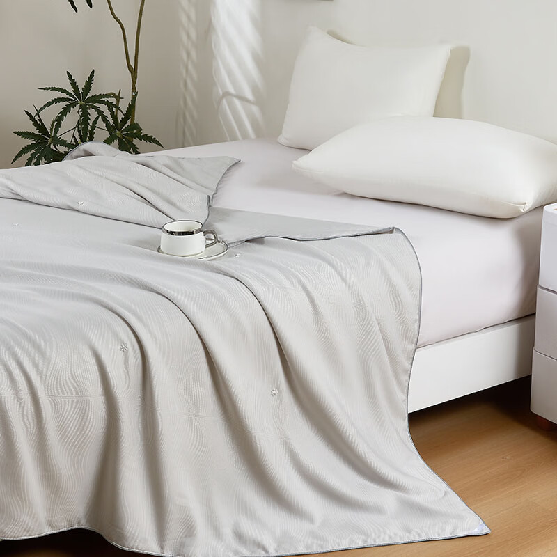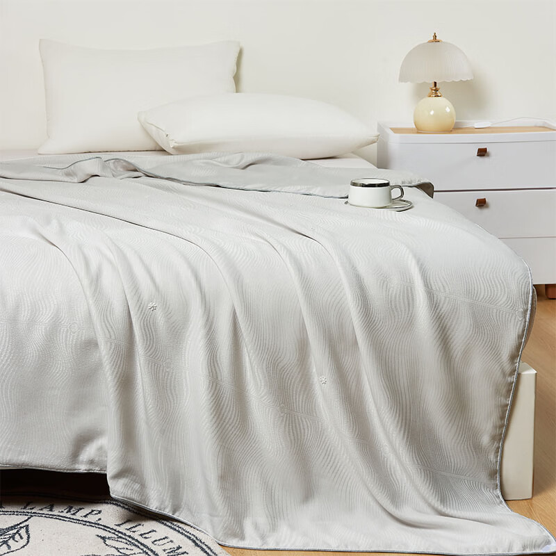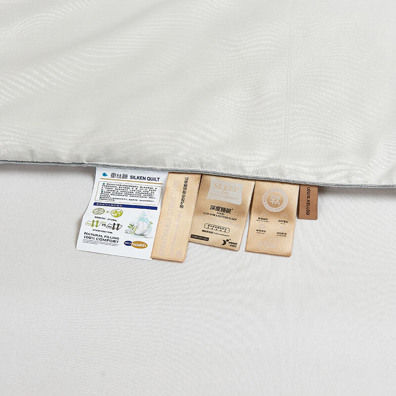 货 号:LK-8536 面 料:亮丝提花面料(聚酯纤维) 填 充:100 %蚕丝(中长丝) 规 格:200*230cm 克 重:1700克