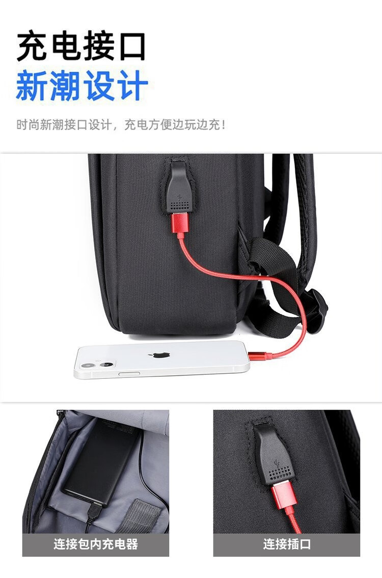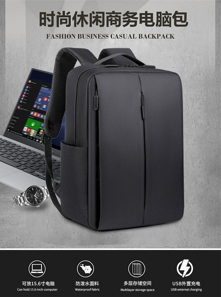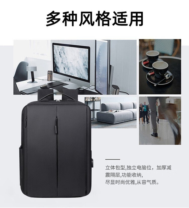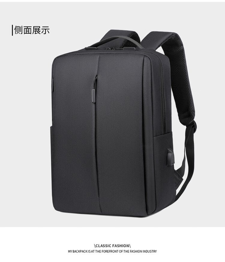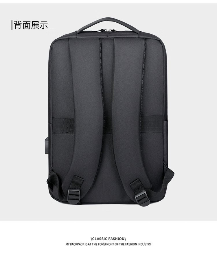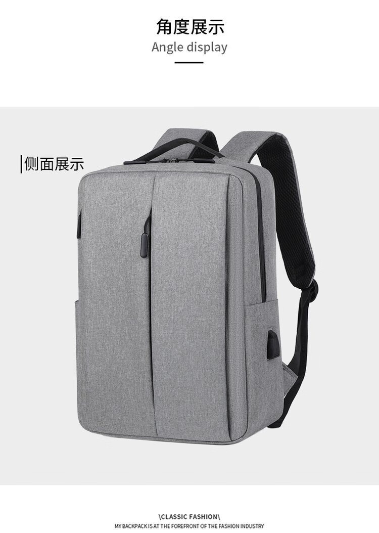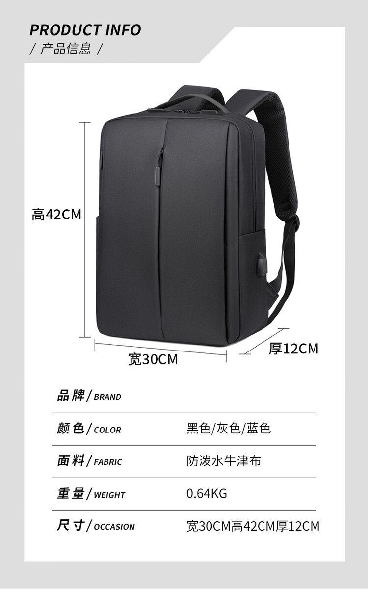 规格:42*30*12cm 重量:0.48kg 材质:优质牛津布 电脑尺寸:16寸 颜色:黑色/灰色/蓝色 结构:主袋/电脑/前兜/侧袋带USB充电
