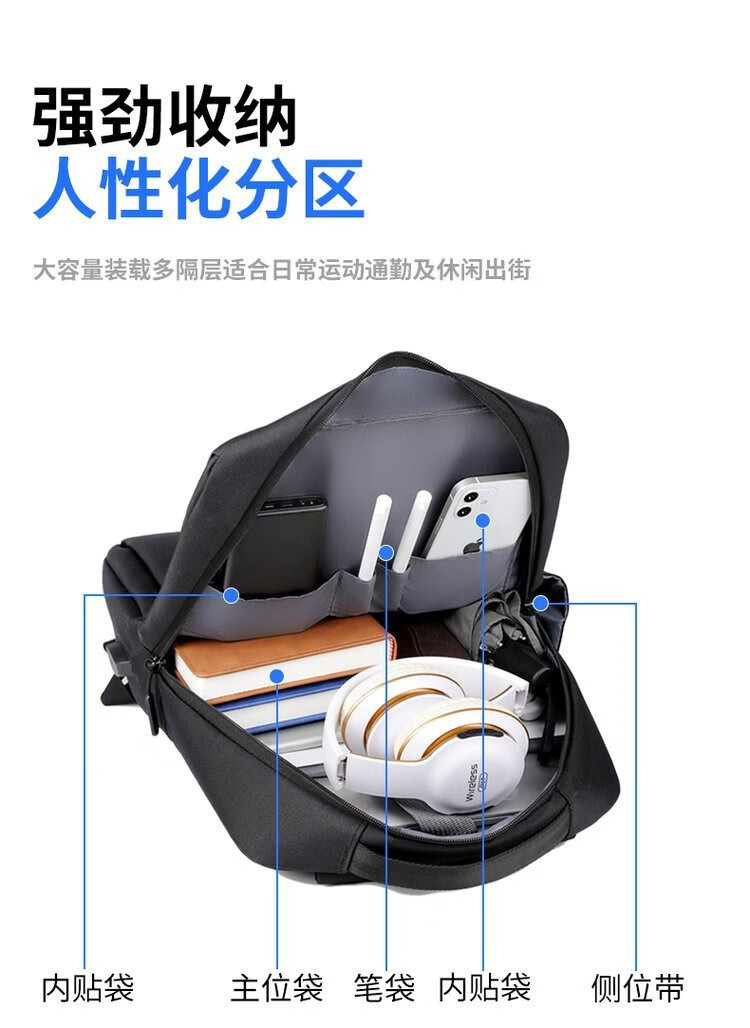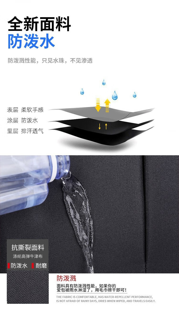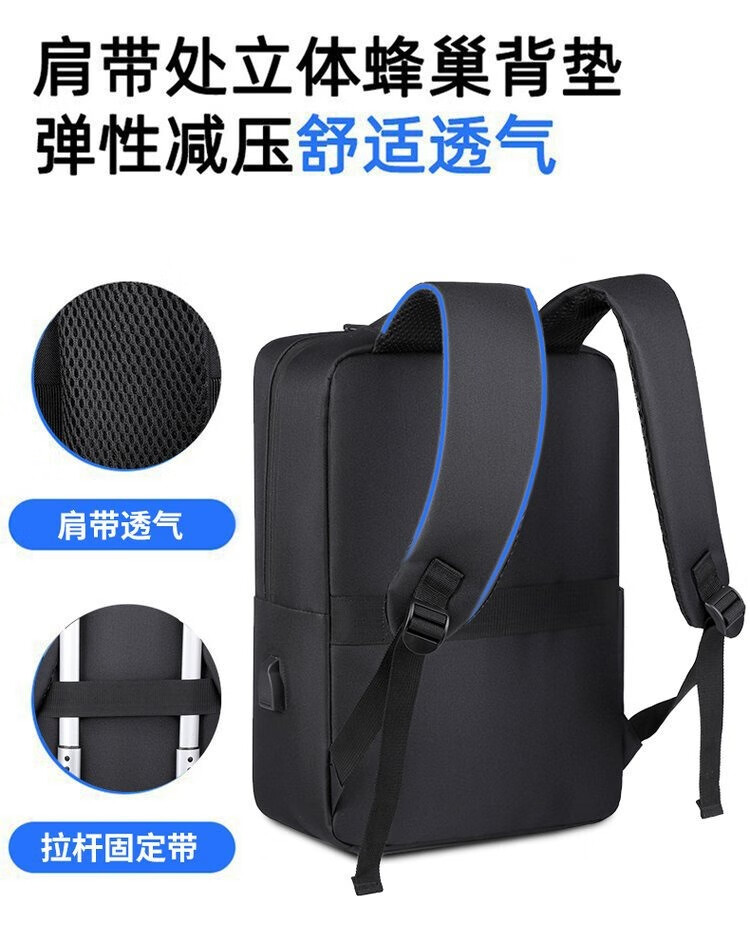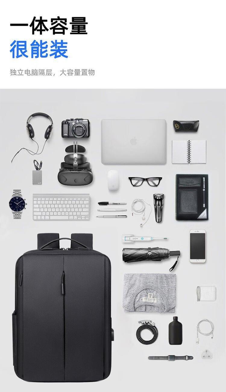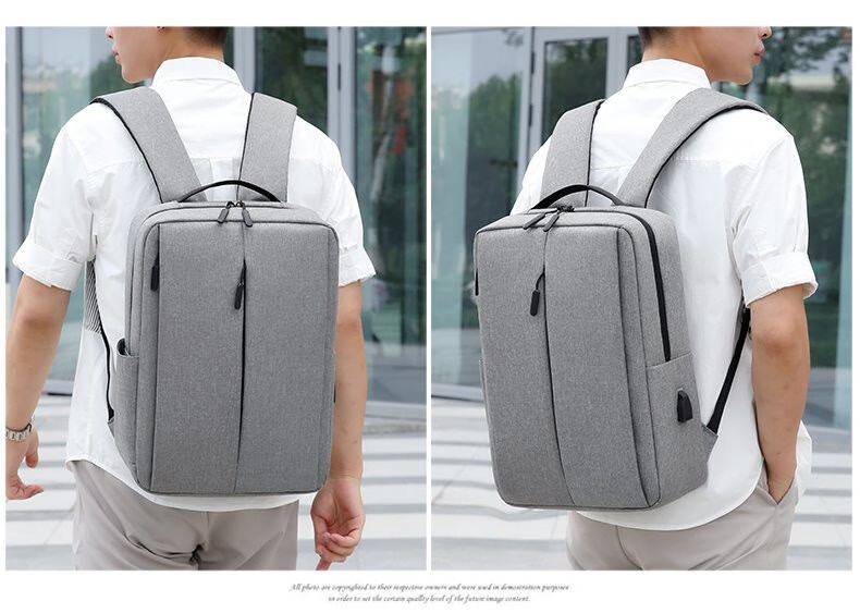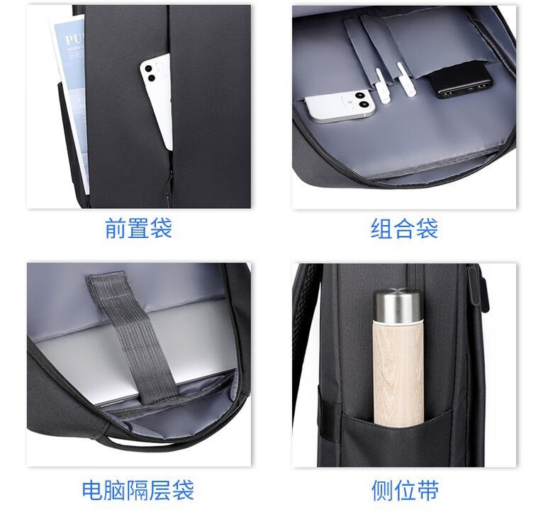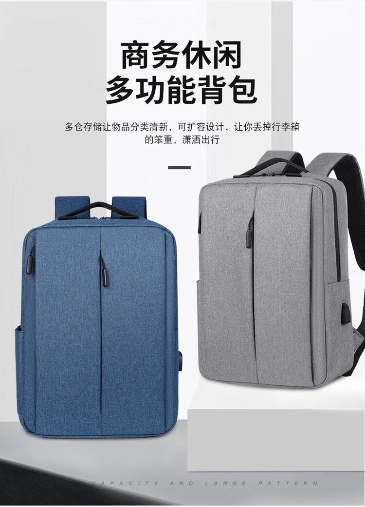 规格:42*30*12cm 重量:0.48kg 材质:优质牛津布 电脑尺寸:16寸 颜色:黑色/灰色/蓝色 结构:主袋/电脑/前兜/侧袋带USB充电